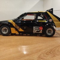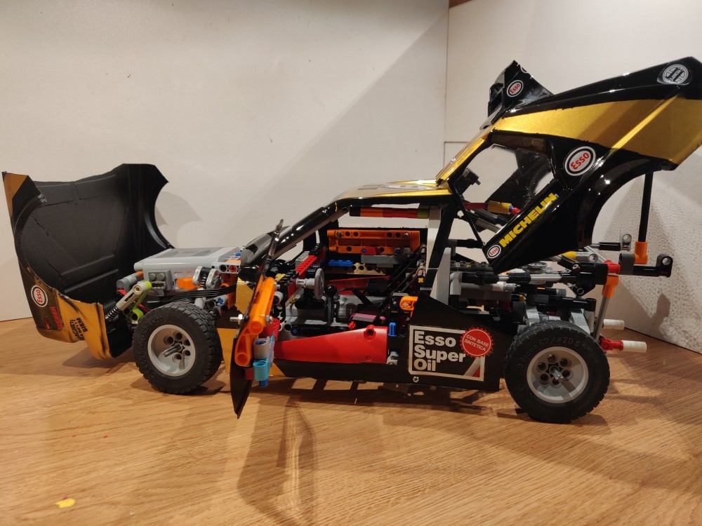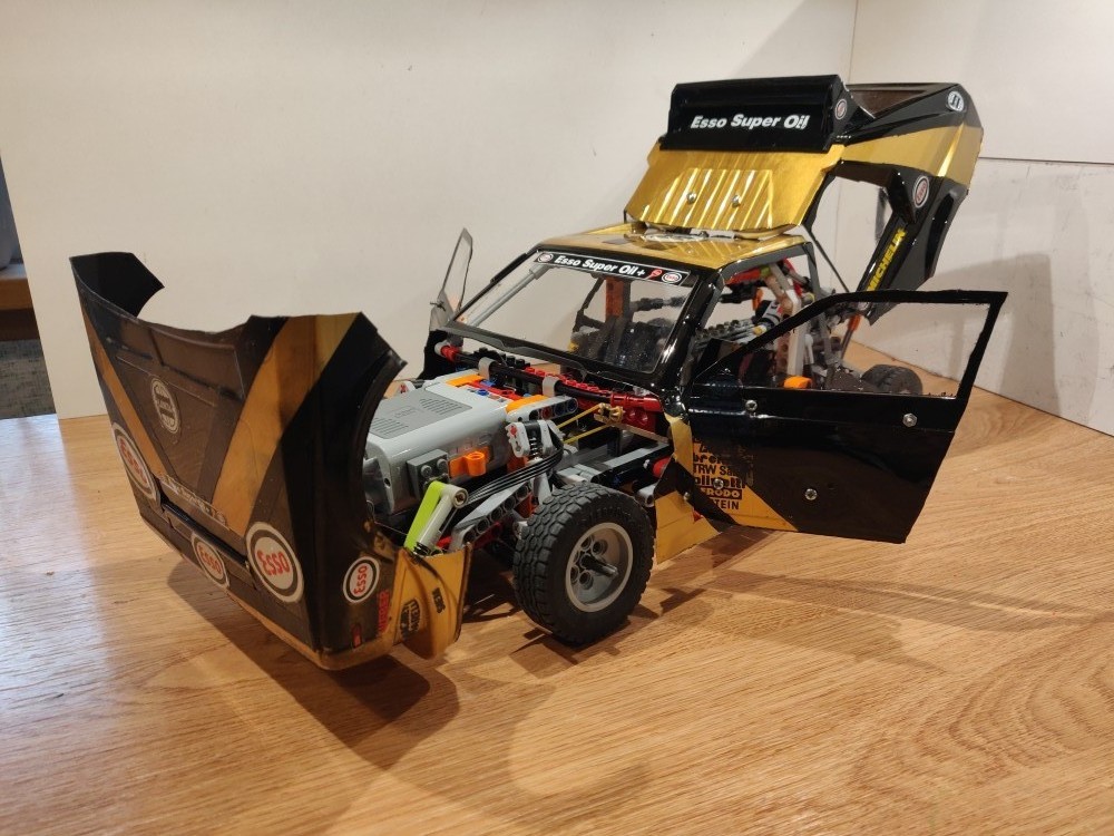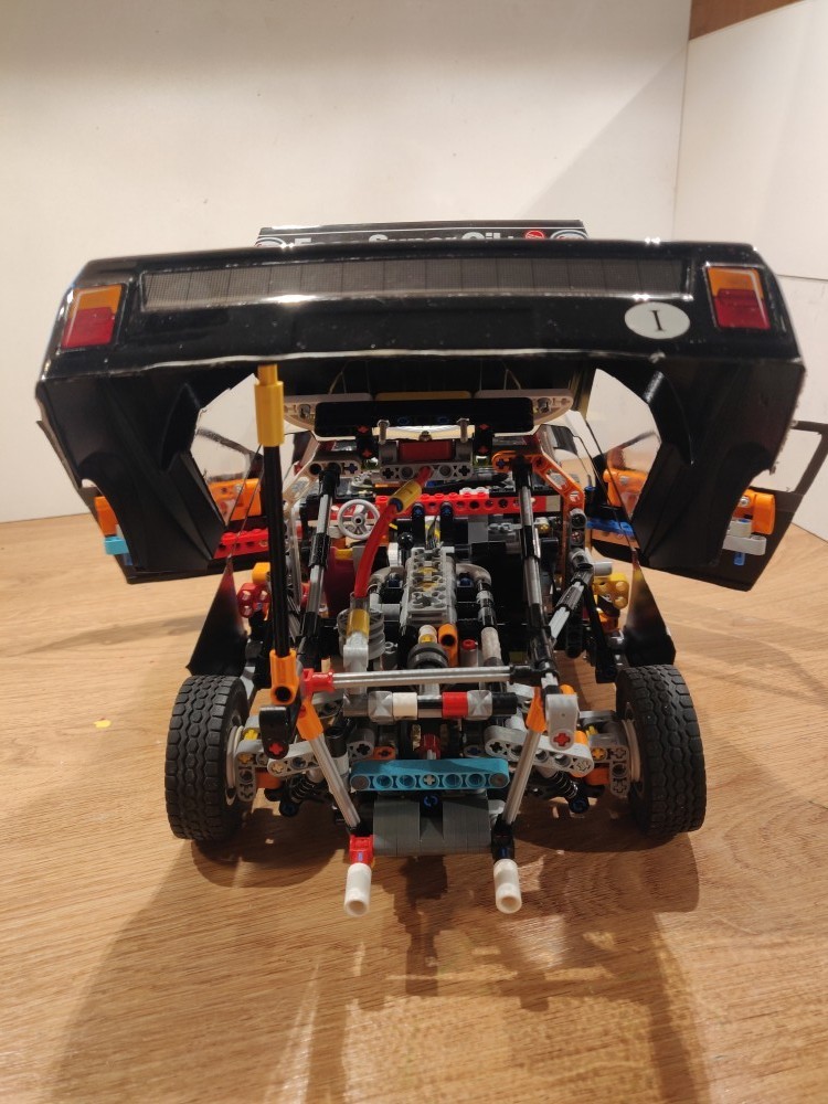 "McPherson strut" esivedrustusega neliveoline Lancia Delta S4. Motoriseeritud Lego Power Functions süsteemiga. Kõik peale plastikust kere on 100% Lego.