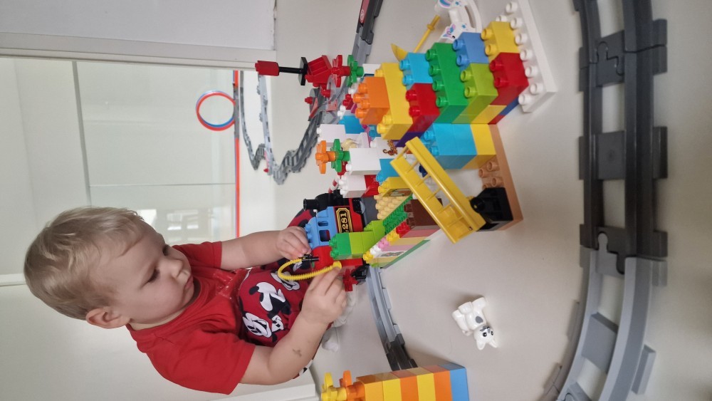 Gustav mängib rongimängu iga päev ja on juba väga osav rongitee ehitaja.