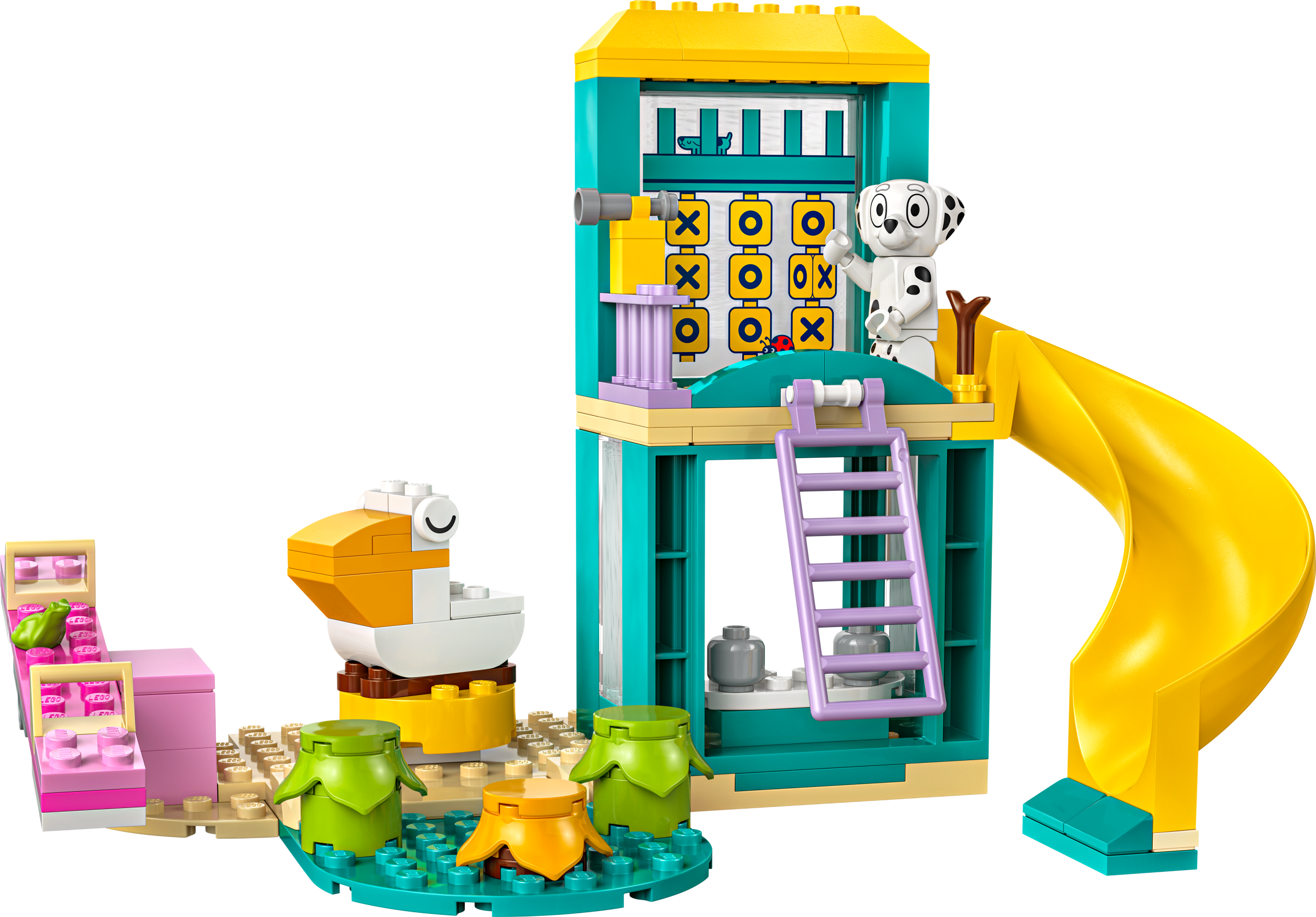 Sellel mitmekülgsel koolieelikute mänguasjal on erksavärvilisel mänguväljakul populaarsete telekoerte Bluey ja Chloe minifiguurid, mida täiendavad kiik, liumägi, džunglijõusaal ja pöörlev pelikan. Seal on ka 3 taime, mille vahel tegelased saavad hüpata, teleskoobiga torn ja piknikuala jookide ja kookidega. Karbis on eraldi kottides üks kokkupandav mudel koti kohta, lisaks suur põhiklots ja lihtsad juhised, mis muudavad ehitamise väikeste jaoks kiireks ja lõbusaks. Intuitiivsed juhised on esitatud värvilises brošüüris.