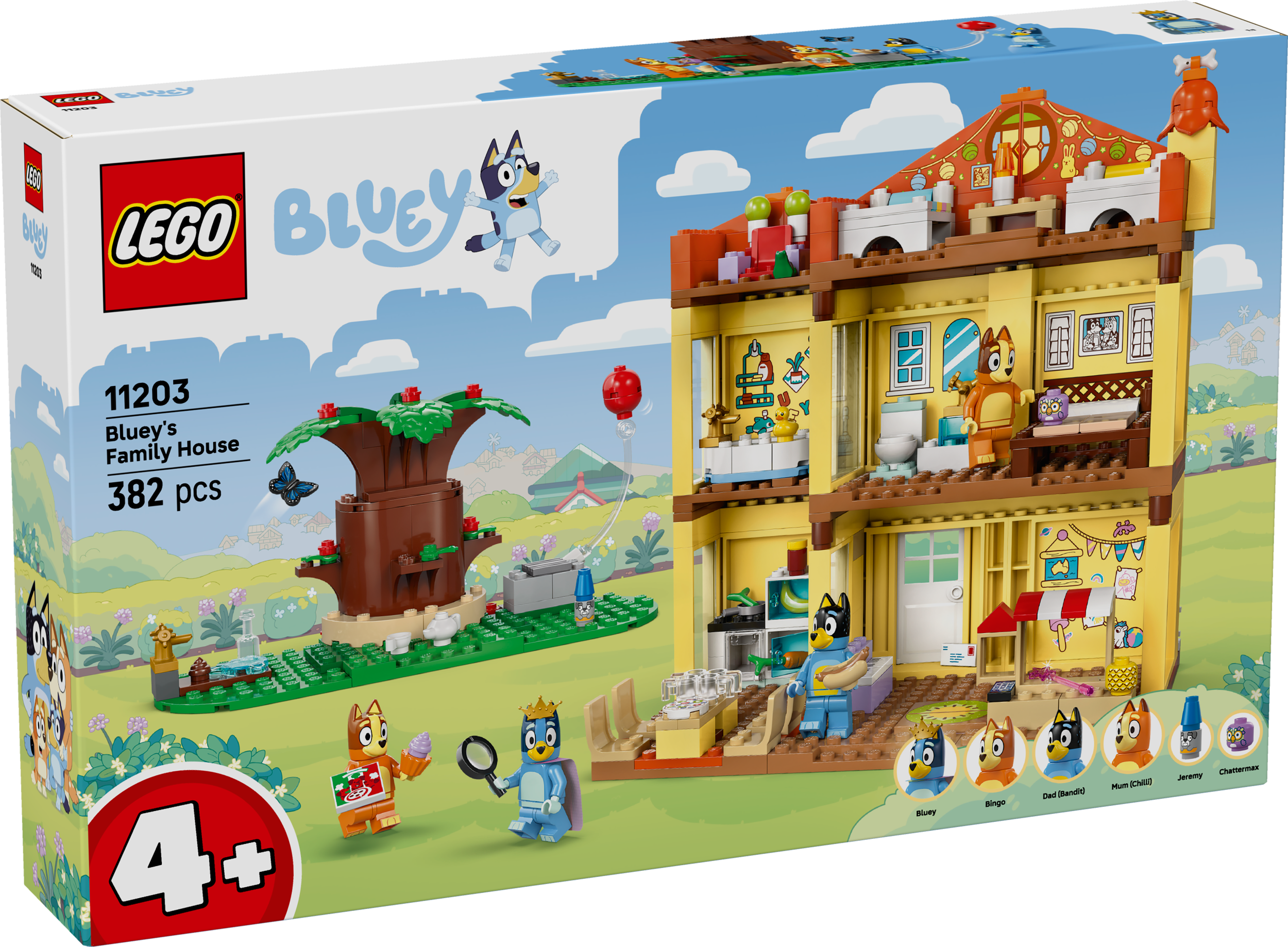- Bluey maja mängukomplekt – lapsed saavad taasetendada lõbu telesaatest Bluey peremaja ehituskomplektiga, mis on mõeldud spetsiaalselt 4-aastastele ja vanematele poistele ja tüdrukutele