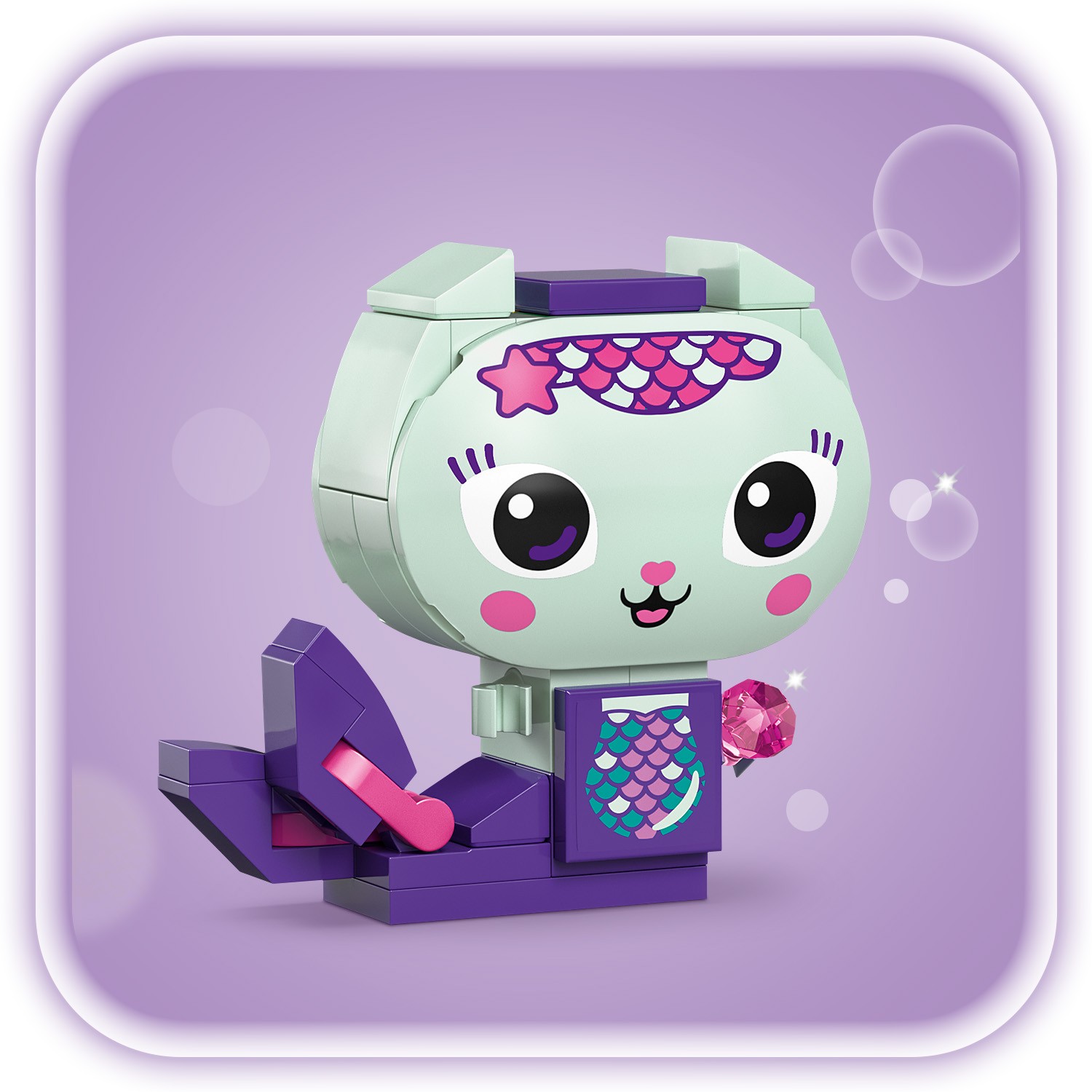 Komplektis on ehitamiseks kuus figuuri, millest igaühel on telesarja tarvikud. MerCatil on teemant, Baby Boxil on Gabby maal, Kitty Fairyl on kastekann, Pandy Pawsil on nukumaja, Cakeyl on kook ja Daniel James ‘DJ’ Catnipil on klaver. Igal alusel on kaks eemaldatavat figuuri. See armas kingitus tüdrukutele ja poistele on suurepärane kingiidee Gabby nukumaja fännidele. Lapsed saavad ehitada enesekindlalt rakenduse LEGO Builder abil. See võimaldab neil suumida, pöörata 3D-s ja jälgida oma edenemist lihtsalt järgitavate digitaalsete juhiste abil. Komplektis on 324 osa.