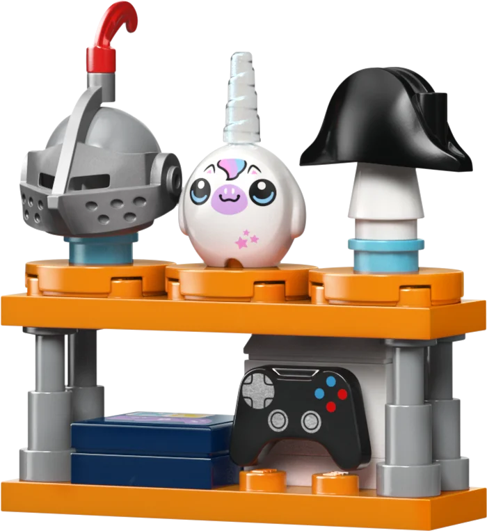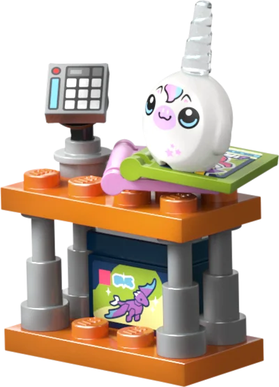 - Ehituskomplekt noortele kangelastele – selles 9-aastastele ja vanematele tüdrukutele ja poistele mõeldud koomiksite ja mängude poes on 4 mininukku, tulnuka ja ükssarviku pehmed LEGO® osad ja tarvikud