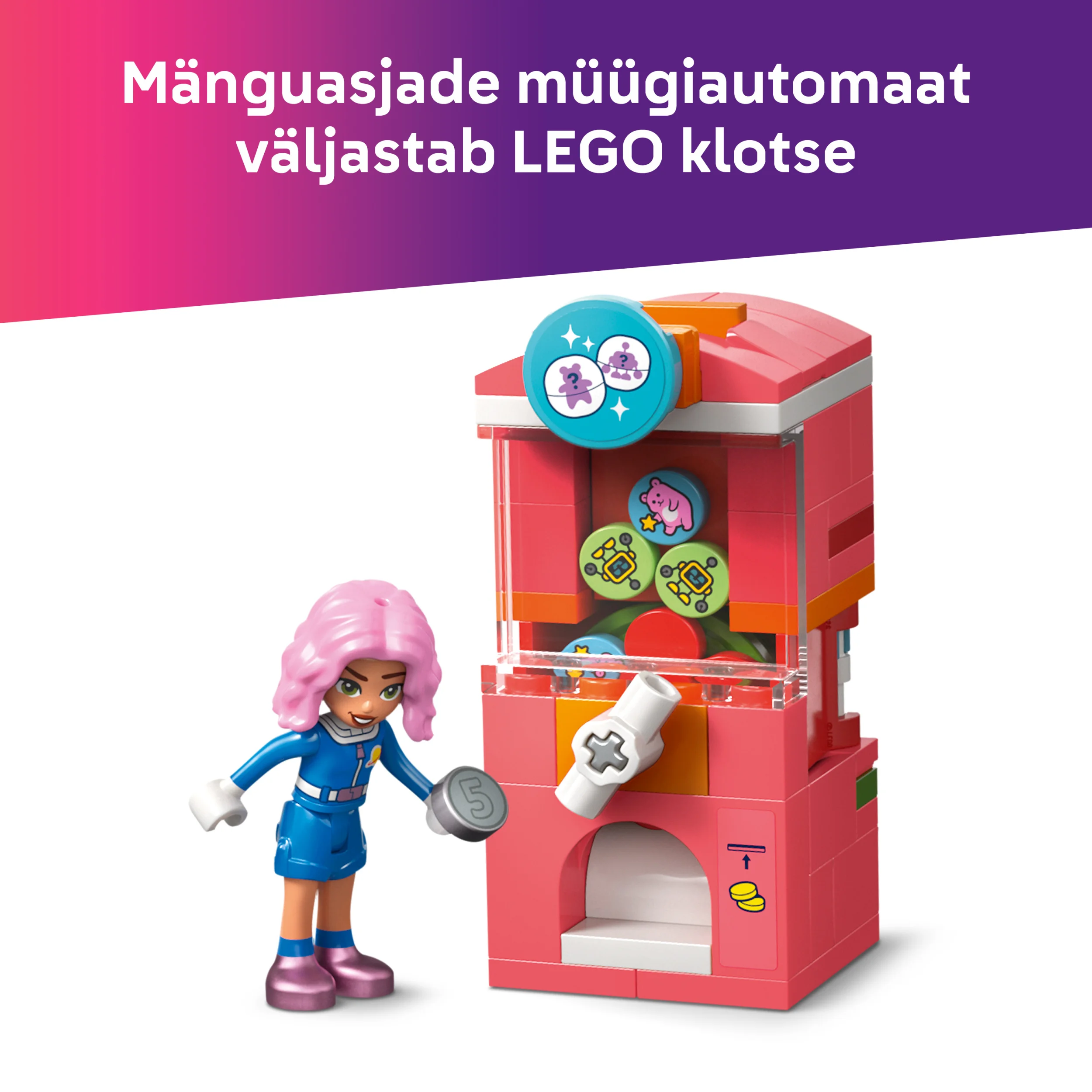 - Mänguasjade müügiautomaat – komplekt on täis funktsioone, nagu mänguasjade müügiautomaat, mis väljastab armsaid väikseid mängudetaile, mänguautomaat, mänguala, retroteemaline sisekujundus ja jääjoogipood