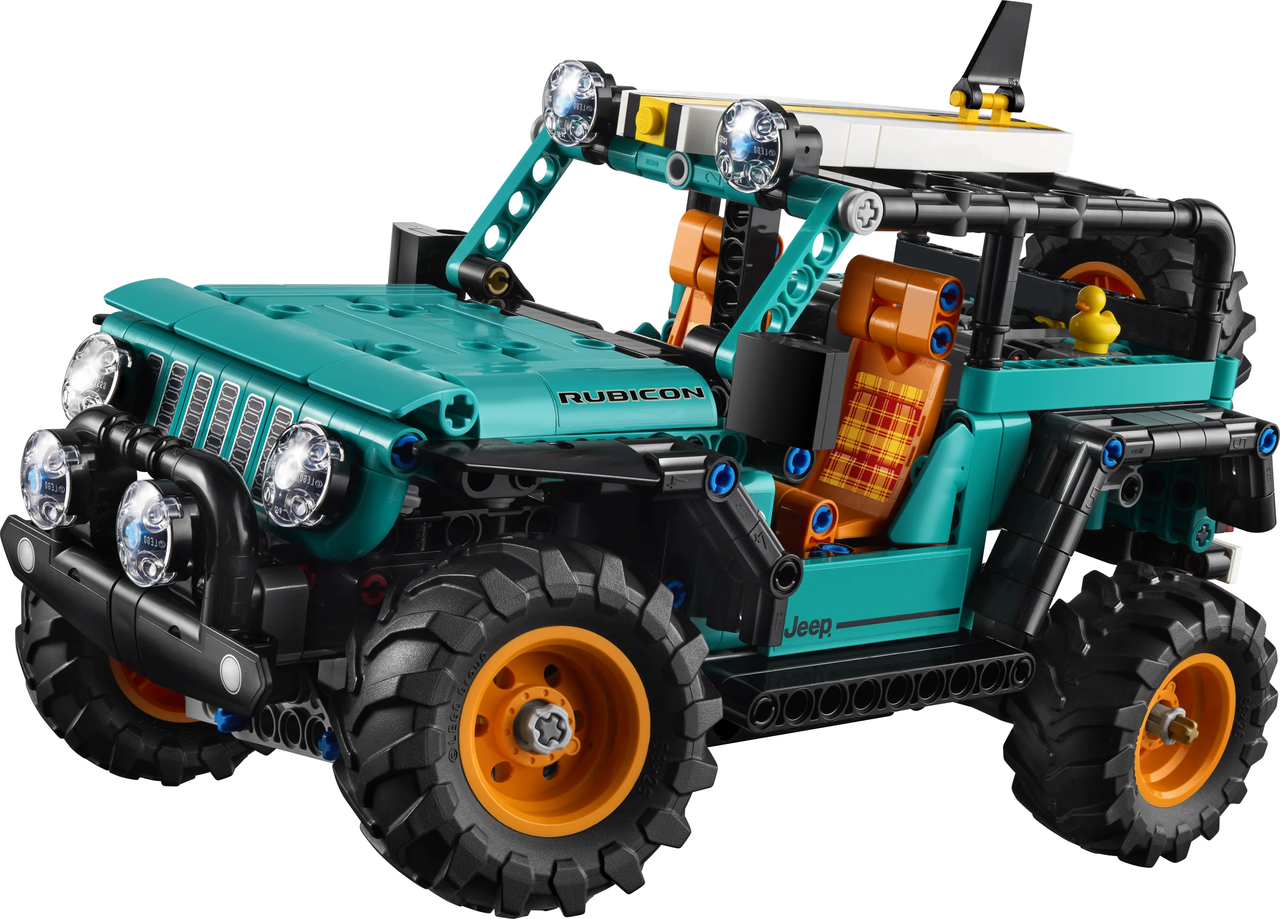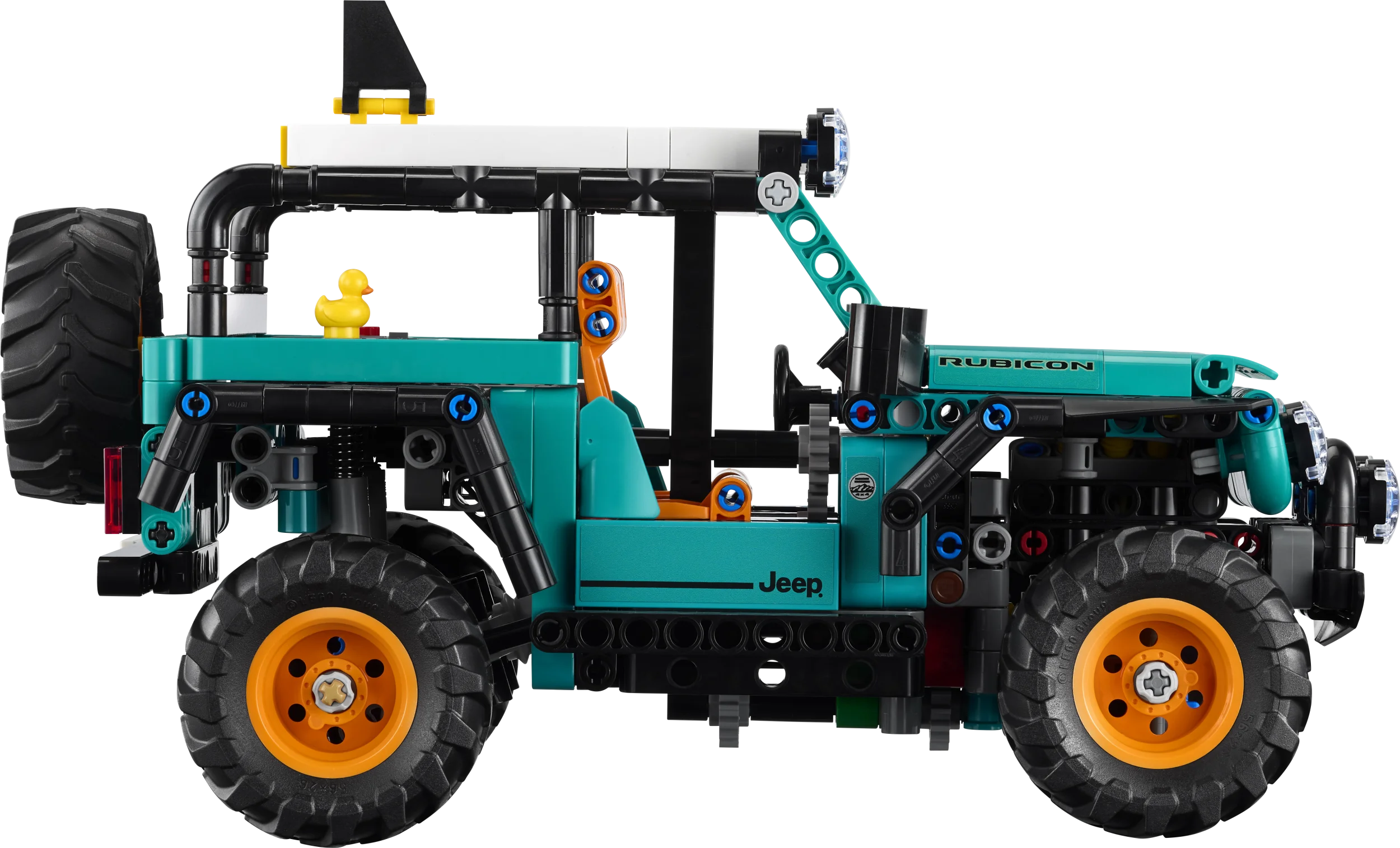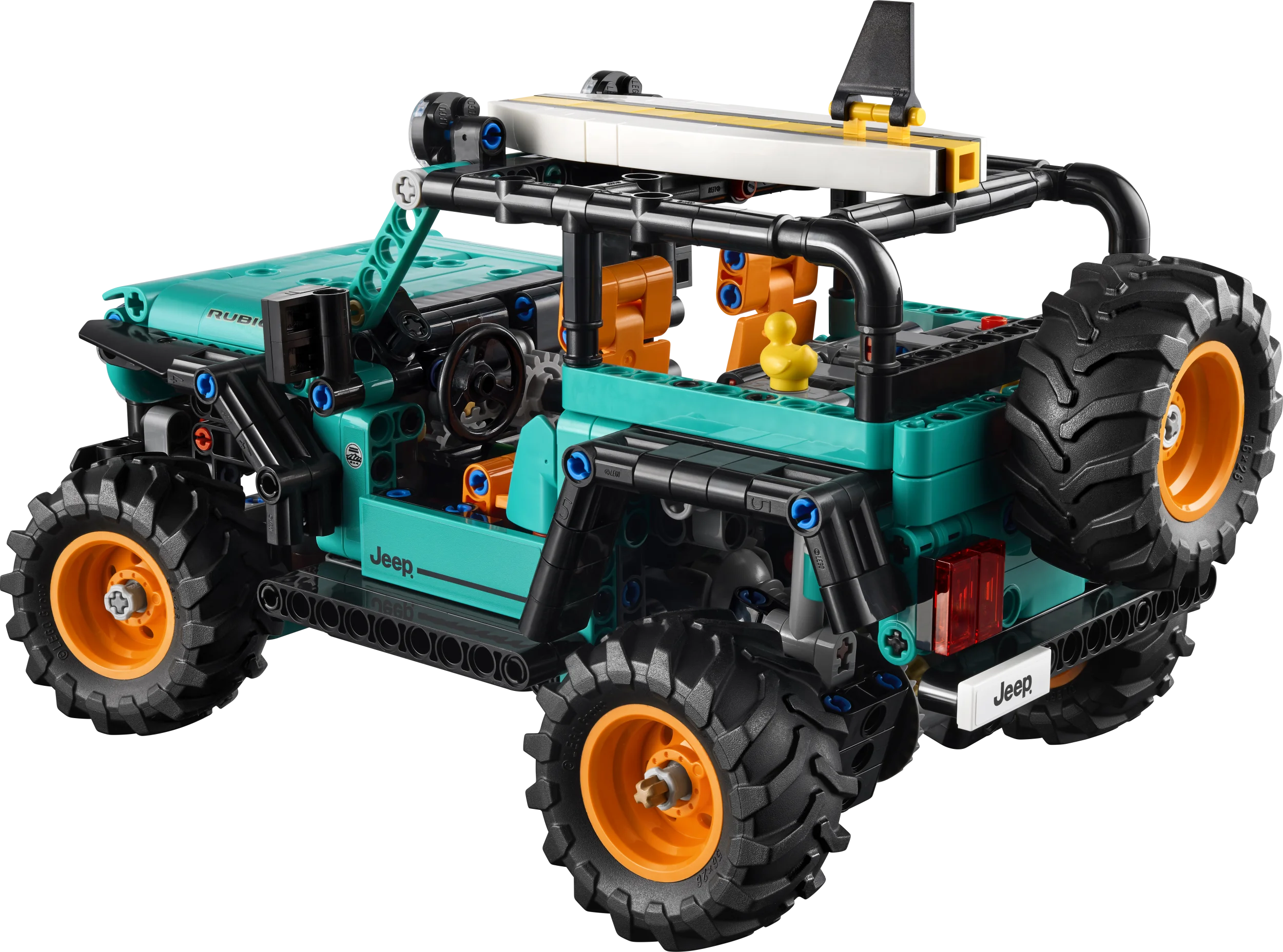 • KUMMIPART – See LEGO® Technic sarja auto sisaldab kummiparti, mis on fännide seas populaarne traditsioon, kus kummipart asetatakse teistele Jeepi sõidukitele