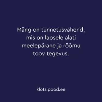 Mäng ei ole lapse jaoks lihtsalt ajaviide – see on tema loomulik viis maailma avastada ja mõista. Läbi mängu kogeb laps rõõmu, saab väljendada oma tundeid ning vabastada sisemisi pingeid. Just mängides areneb laps märkamatult nii füüsiliselt, sotsiaalselt, emotsionaalselt kui ka vaimselt.