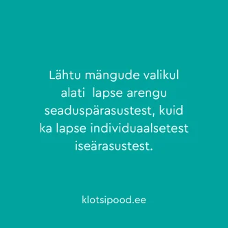 Kokkuvõttes võib öelda, et õigesti valitud mäng ei ole ainult meelelahutus – see on lapse arengus üks olulisemaid tööriistu. Valides mänguasju teadlikult ja lapse arengut arvestades, loome talle parimad võimalused õppimiseks läbi rõõmu.