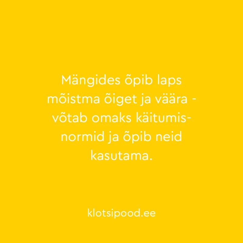 Mängu kaudu õpib laps ka sotsiaalseid oskusi – ta hakkab mõistma, mis on õige ja vale, ning omandab käitumisnorme, mida hiljem igapäevaelus rakendada.