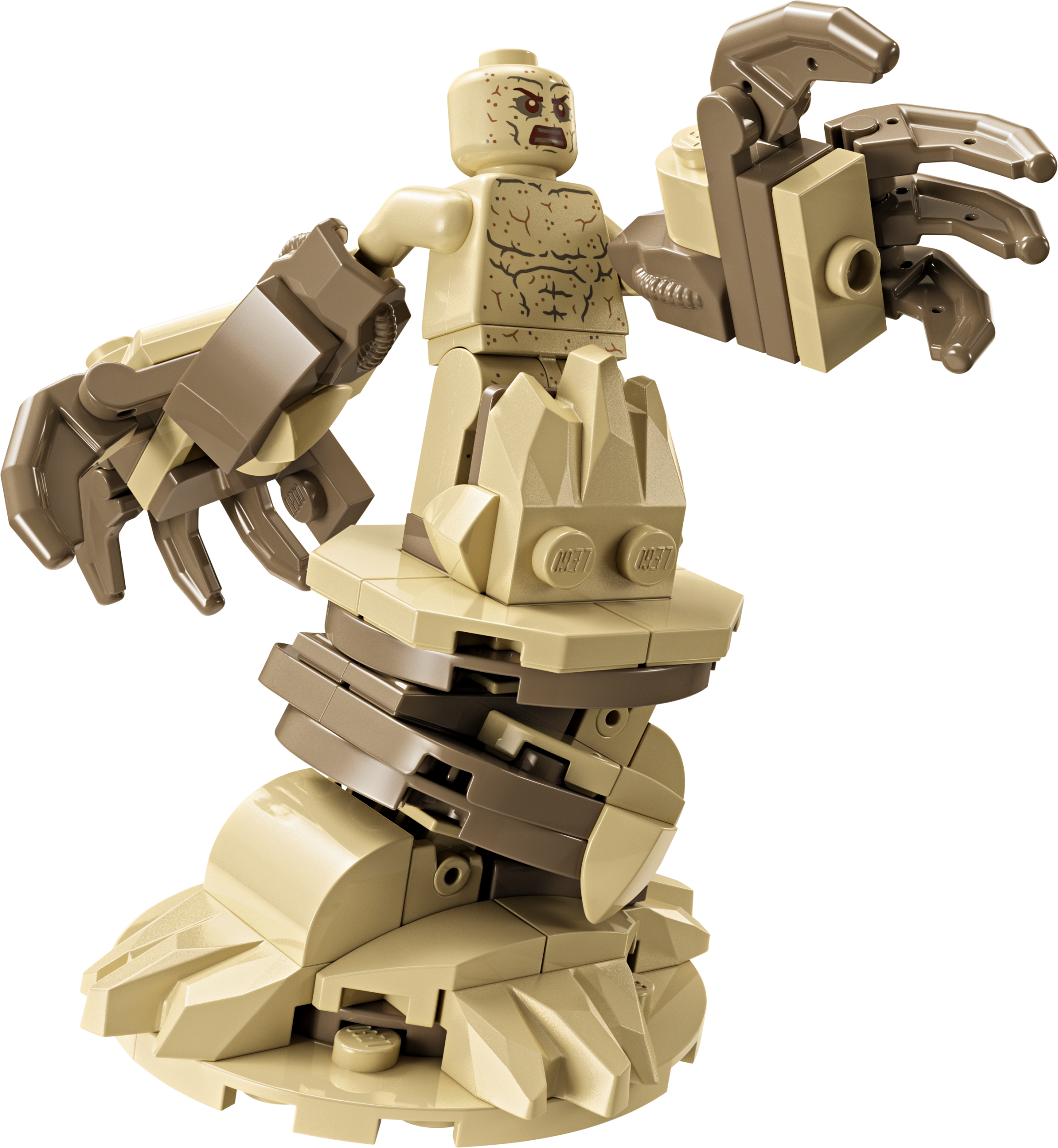 - 3 LEGO® ǀ MARVEL MINIHAHMOA – Setti sisältää 3 taistelevaa minihahmoa: Spider-Manin, Venomin lonkeroineen ja Sandmanin, jolla on valtava käsi