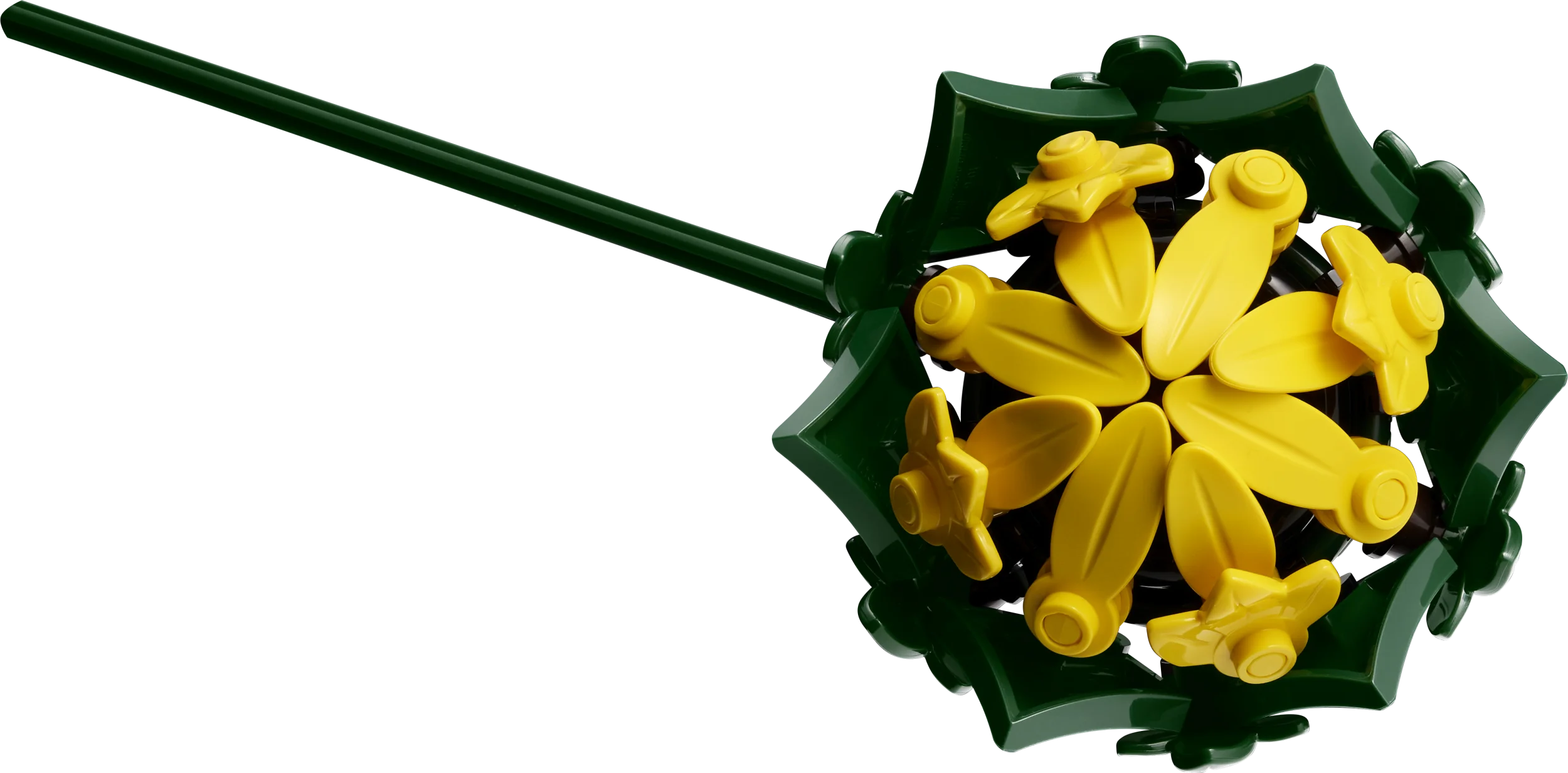 Šajā skaistajā LEGO pušķī ir 6 saulespuķes dažādos plaukšanas posmos. Uzbūvē vienu saulespuķes pumpuru, trīs saulespuķes, kas sāk plaukt, un divas pilnībā atvērušās saulespuķes, kā arī četrus eikalipta kātus. Šie LEGO ziedi ir ļoti reālistiski, lapas un kāti ir regulējami, lai topošie floristi varētu izkārtot augus izteiksmīgā buķetē un ar lepnumu izlikt tos apskatei kā ziedošu dekoru. To var savienot arī ar citiem LEGO Botanicals komplektiem (katrs jāiegādājas atsevišķi), lai izveidotu lielāku, pielāgotu ziedu modeli.