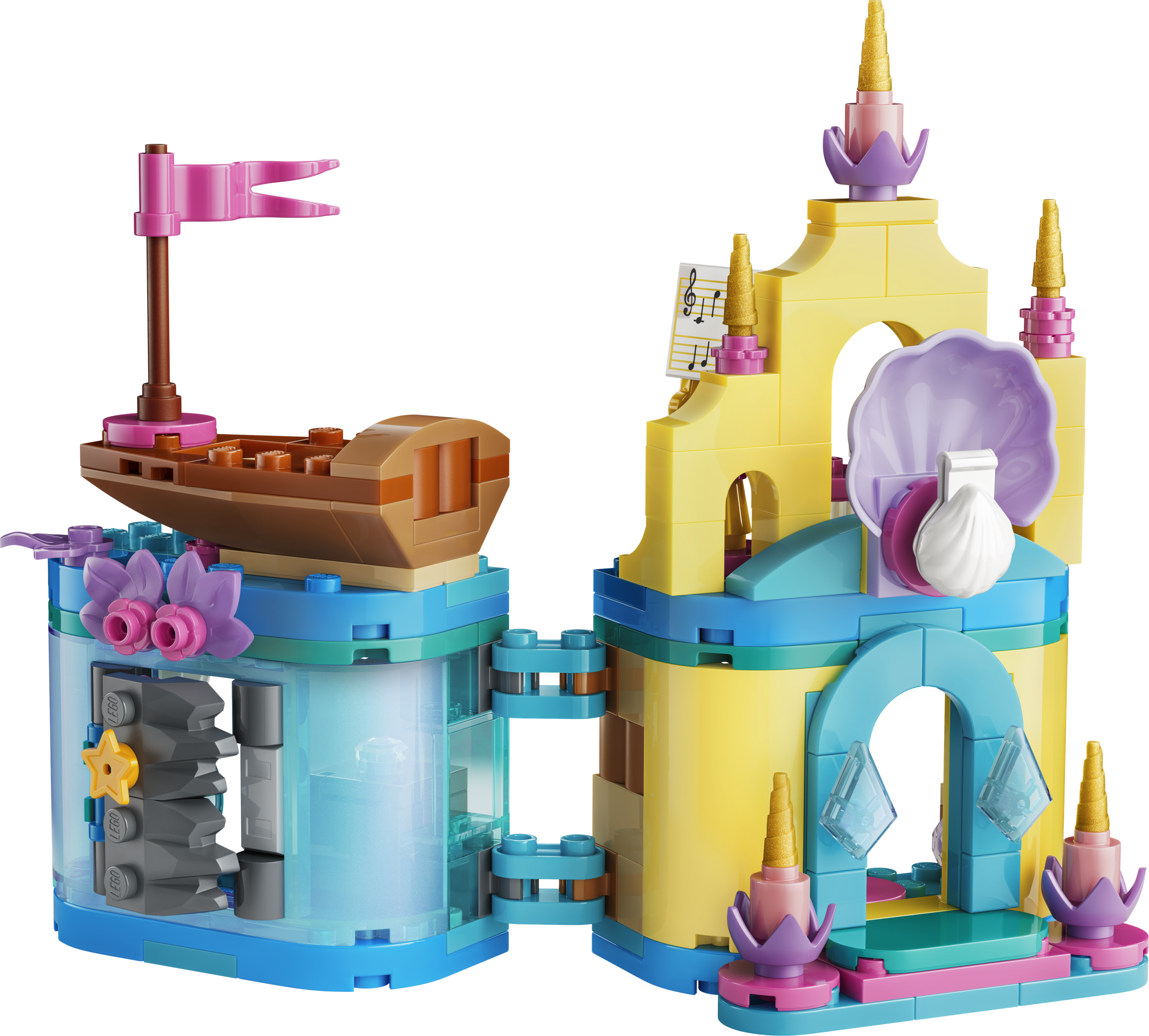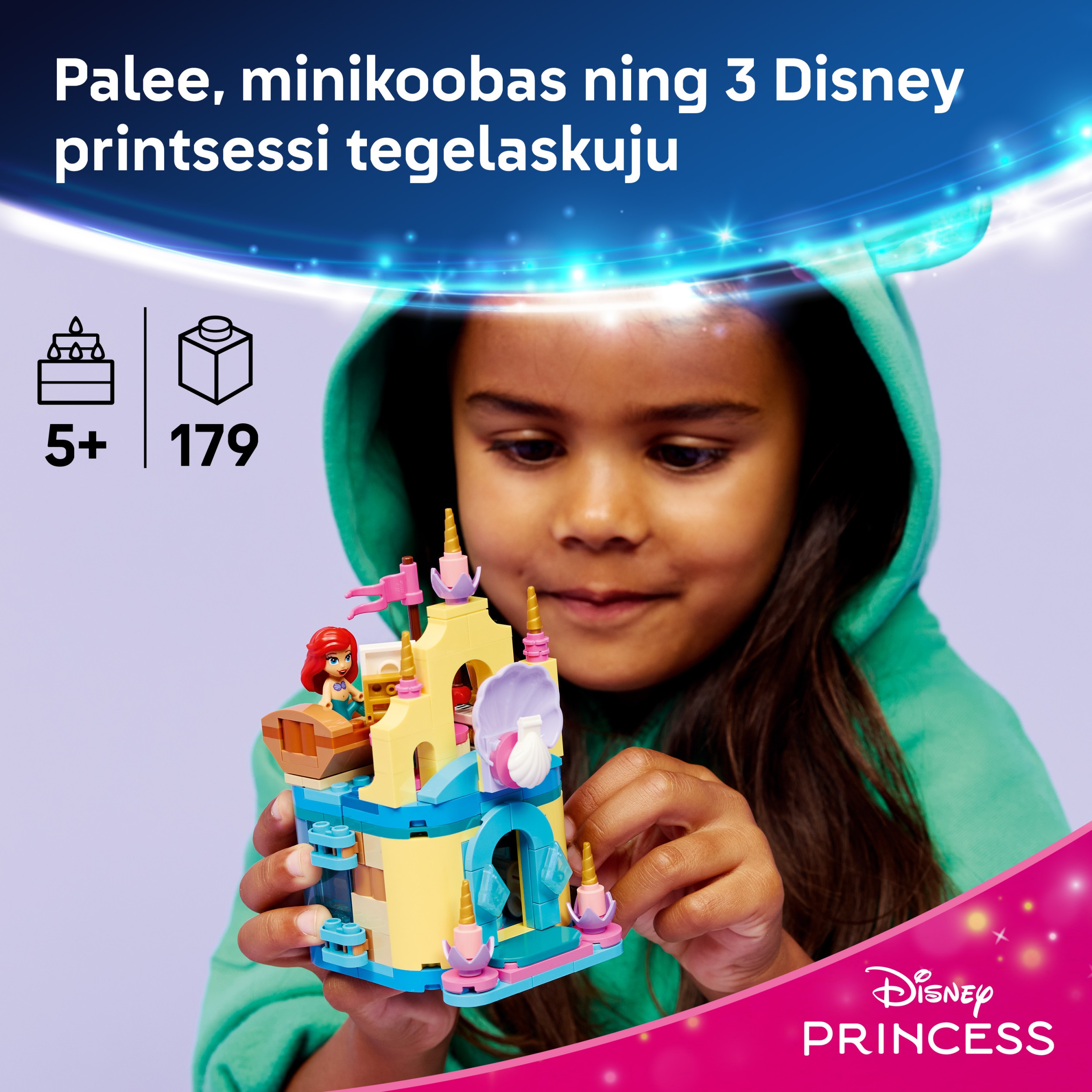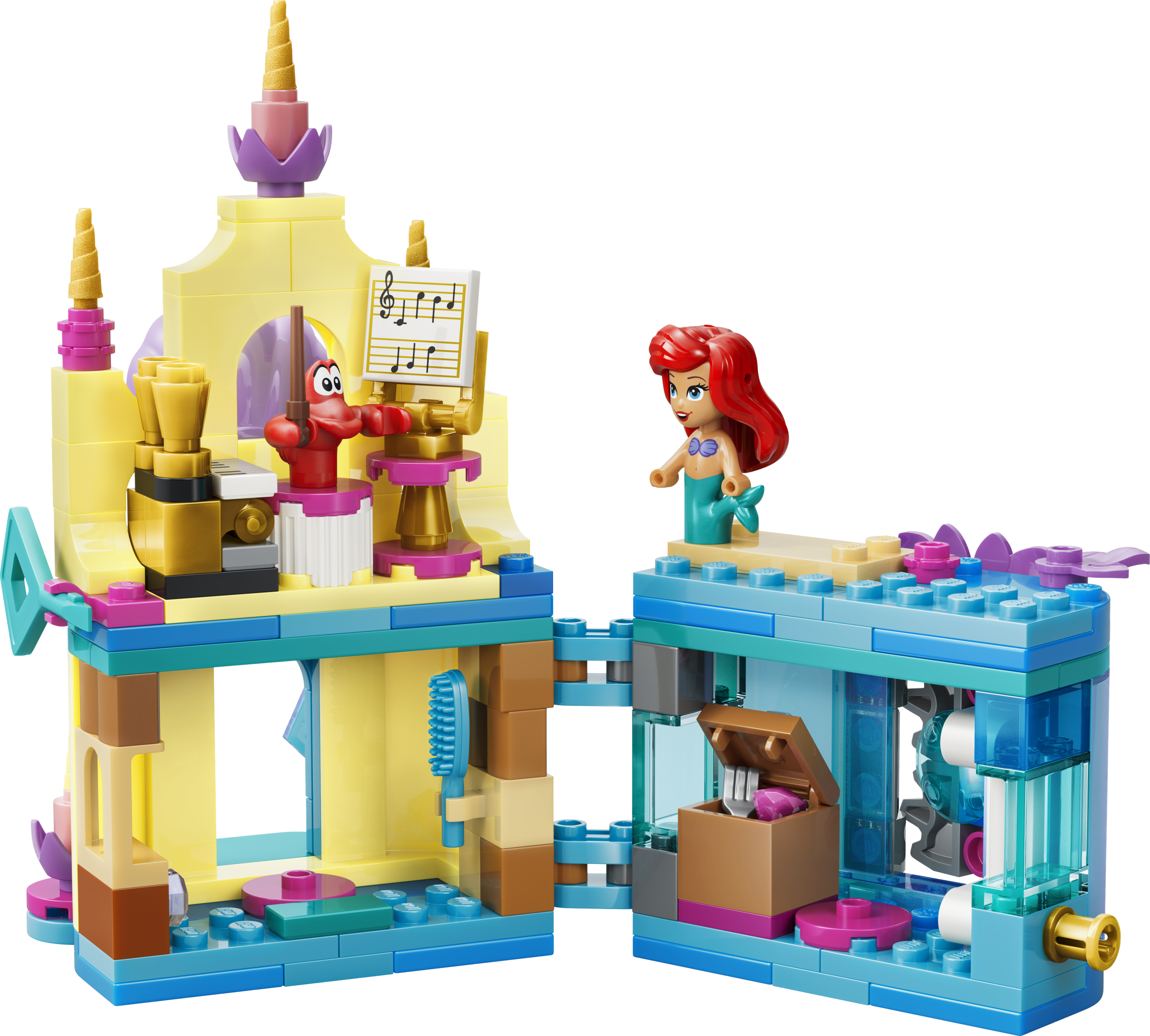 - DISNEY MAZĀS NĀRIŅAS BŪVĒŠANAS KOMPLEKTS. Arielas maģiskā mini pils (43285) ietver Arielas, Plunkšķa un Sebastiana LEGO® ǀ Disney tēlus, nelielu laiviņu, aizslēdzamu pili un grotu