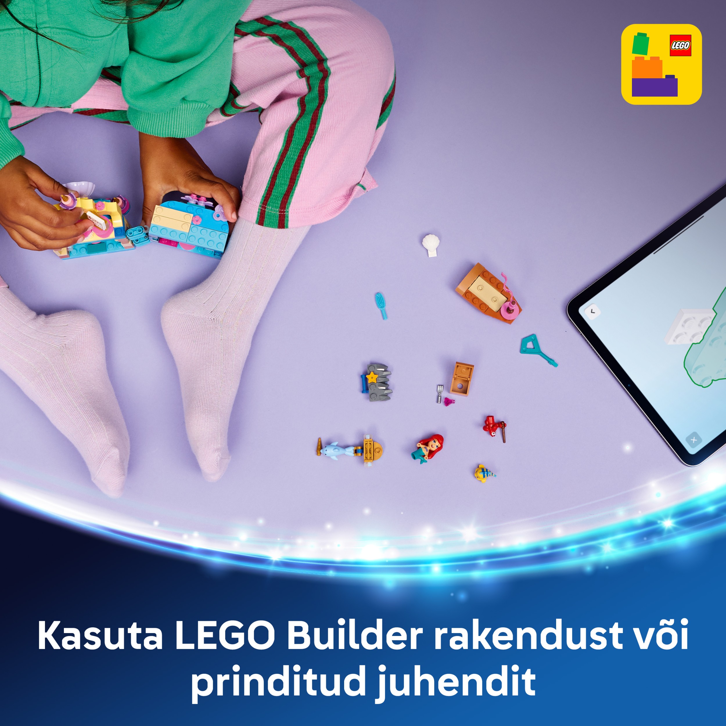- LEGO® ǀ DISNEY TĒLI UN AKSESUĀRI. Izspēlē iemīļotākās ainas no filmas vai radi jaunus stāstus ar Disney Princess Arielu, Plunkšķi un Sebastianu, dārgumu lādi ar dakšu un kristālu, un daudz ko citu