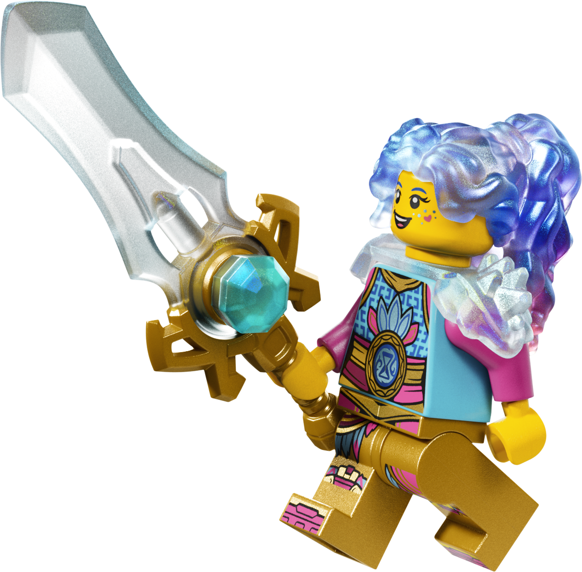 - FANTĀZIJAS ROTAĻLIETU KOMPLEKTS AR PIEDERUMIEM. Visas trīs minifigūras papildina aksesuāri zobeni krāsās, kas pieskaņotas tēlam, kā arī dimanta ola, no kuras izšķiļas dārgumu radība