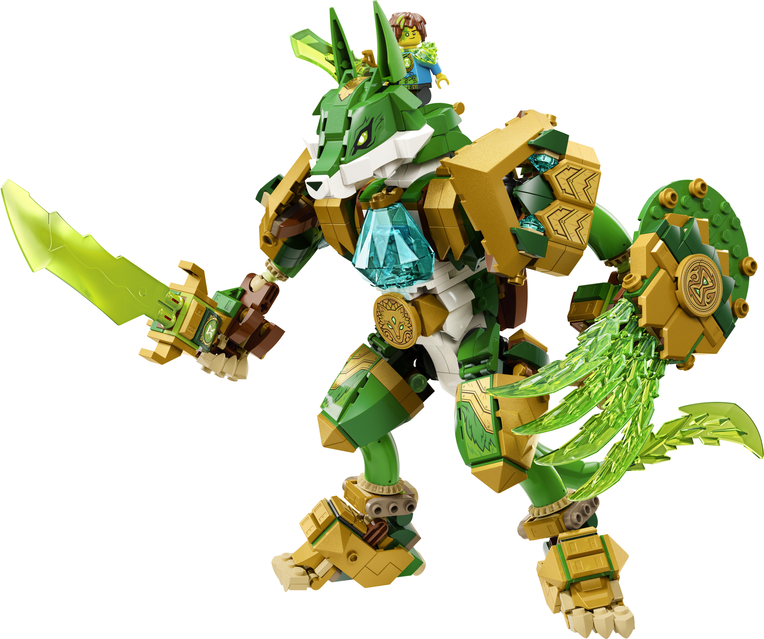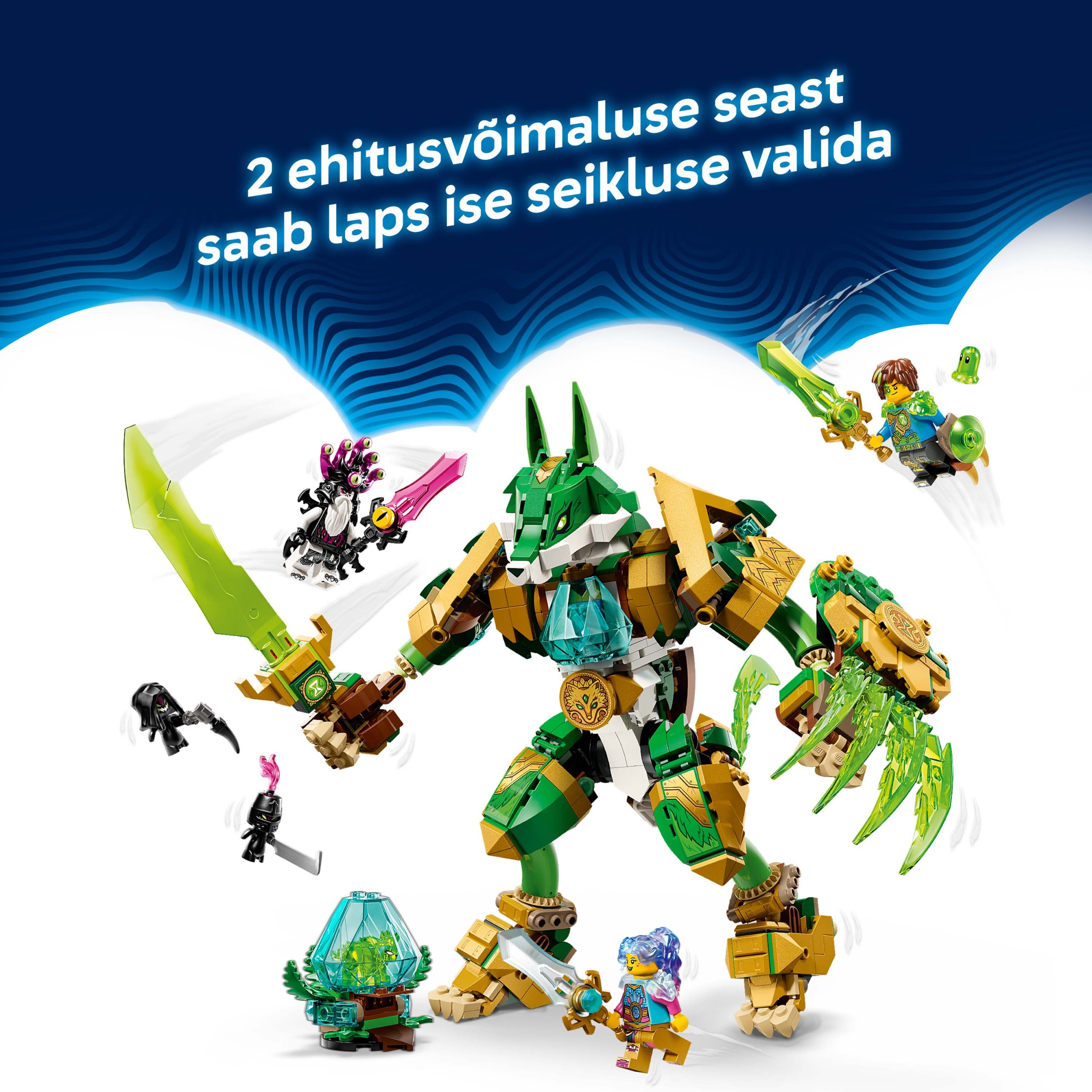 Mazie sapņotāji ar prieku uzbūvēs rotaļu lapsu kā spēcīgu kareivi, kas stāv uz divām kājām un tur zobenu un vairogu, vai cēlu lapsas sargu, kas stāv uz četrām kājām un ir aprīkots ar spārniem. Mateo, Izzie un Murgu imperatora minifigūras rosina tēlainas rotaļas, un katru no tiem papildina personalizēts zobens pieskaņotā krāsā. Bērni arī priecāsies ieraudzīt divas Grimspawn figūras, Z-Blob figūru un dimanta olu, no kuras izšķiļas Zaļā Dārgumu radība.