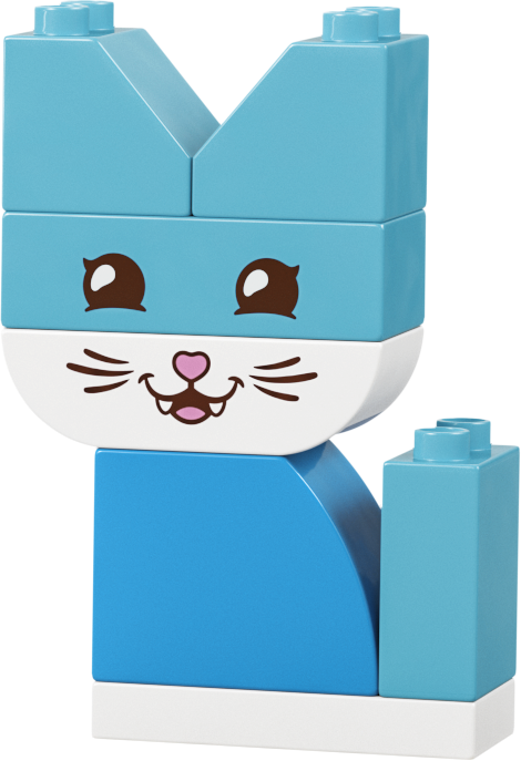 Izmantojot 24 viegli lietojamos klucīšus, kas radīti īpaši mazajiem bērniem, būvētāji var izvēlēties uzbūvēt suņa, kaķa, putna, truša, peles un zivs figūras. Daži no šiem rotaļu dzīvniekiem sastāv no vienkrāsainiem LEGO DUPLO klucīšiem. Mazie būvētāji var iemācīties šķirot pēc krāsām, lai uzbūvētu mājdzīvnieku, un papildināt figūru ar draudzīgu dzīvnieka sejiņu.