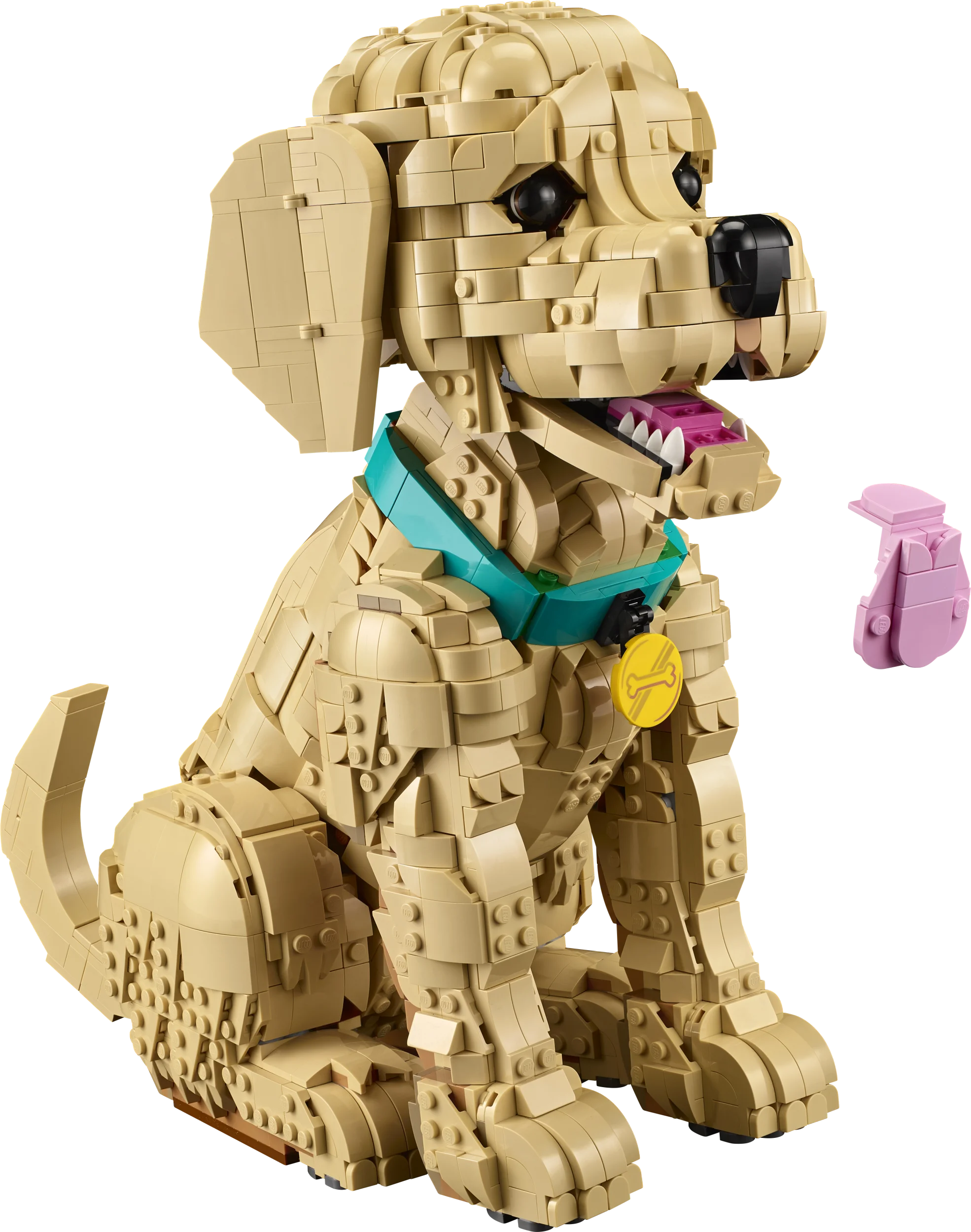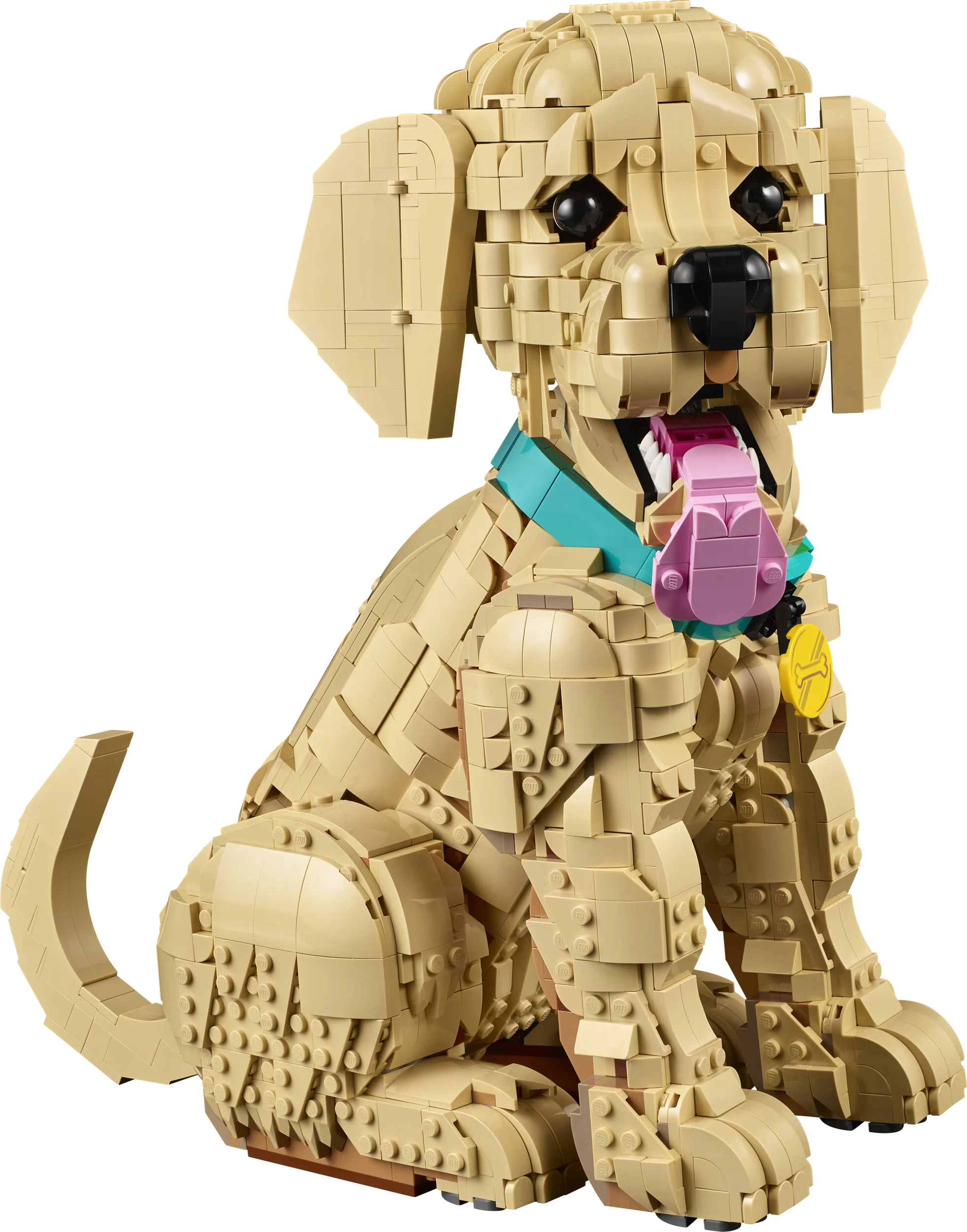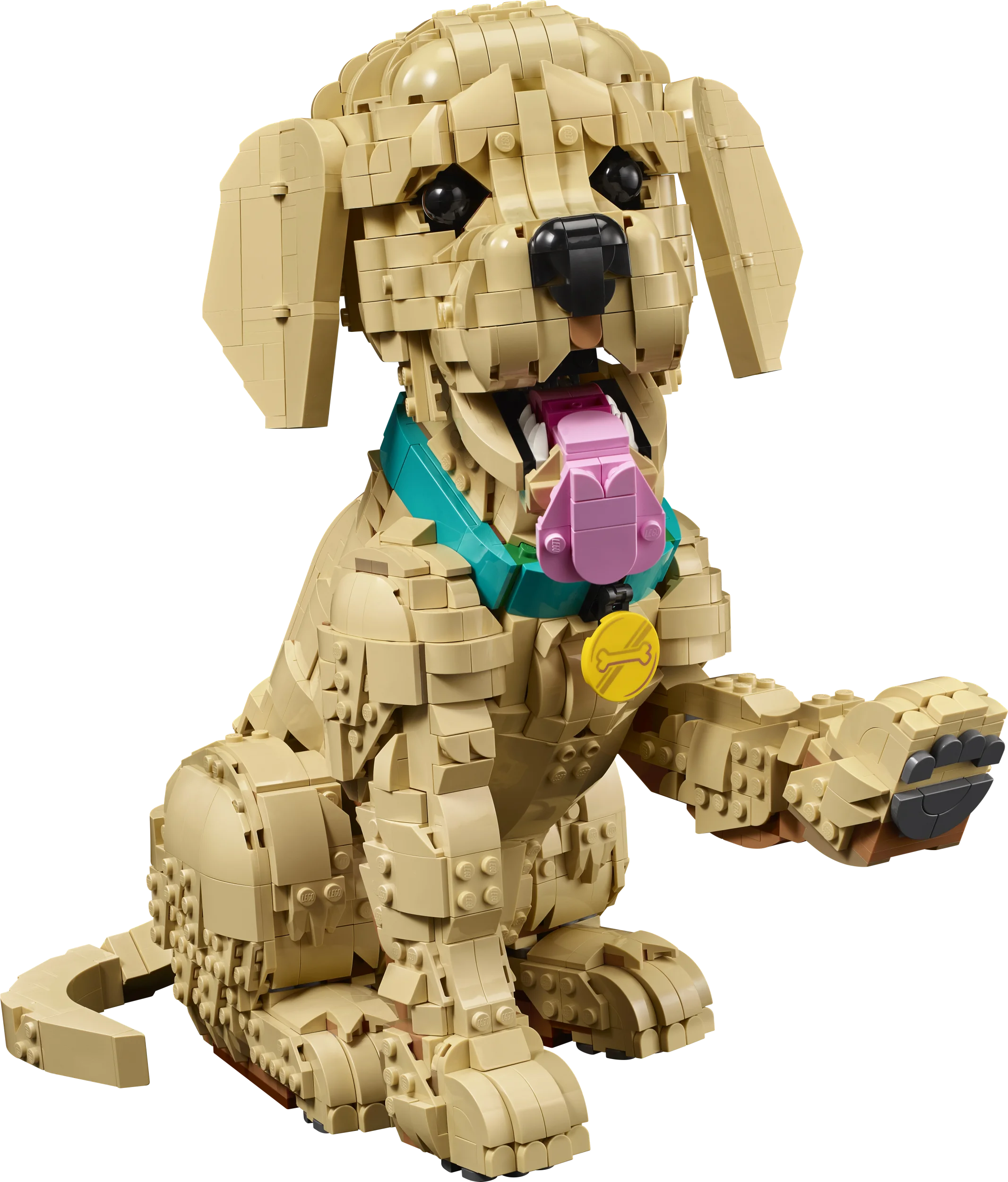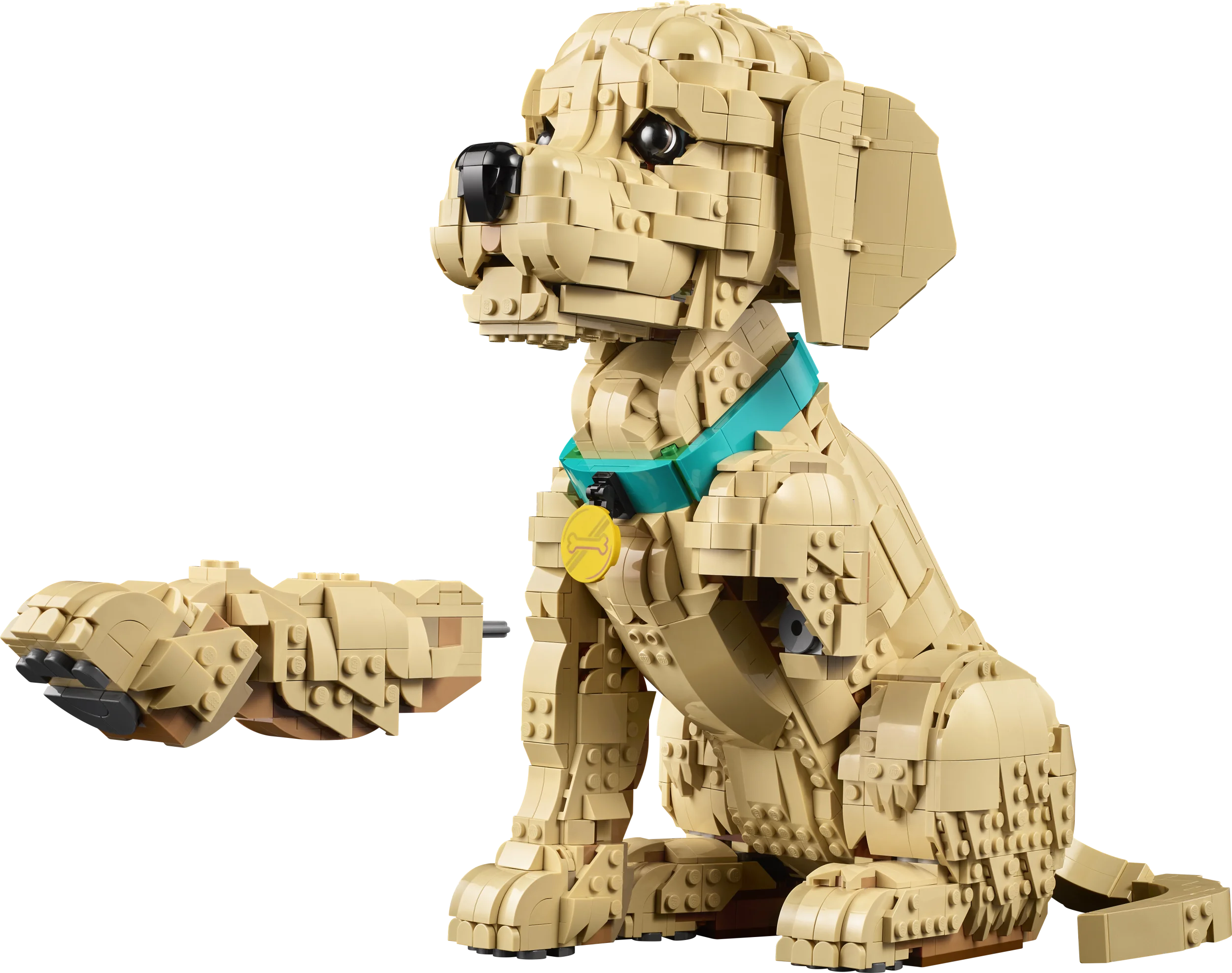 - KUSTĪGA FIGŪRA. Uzbūvē detalizētu zelta retrīvera kucēna LEGO® interpretāciju ar krāsainu siksniņu un medaljonu, un kustīgām ekstremitātēm, lai radītu dinamiskas pozas