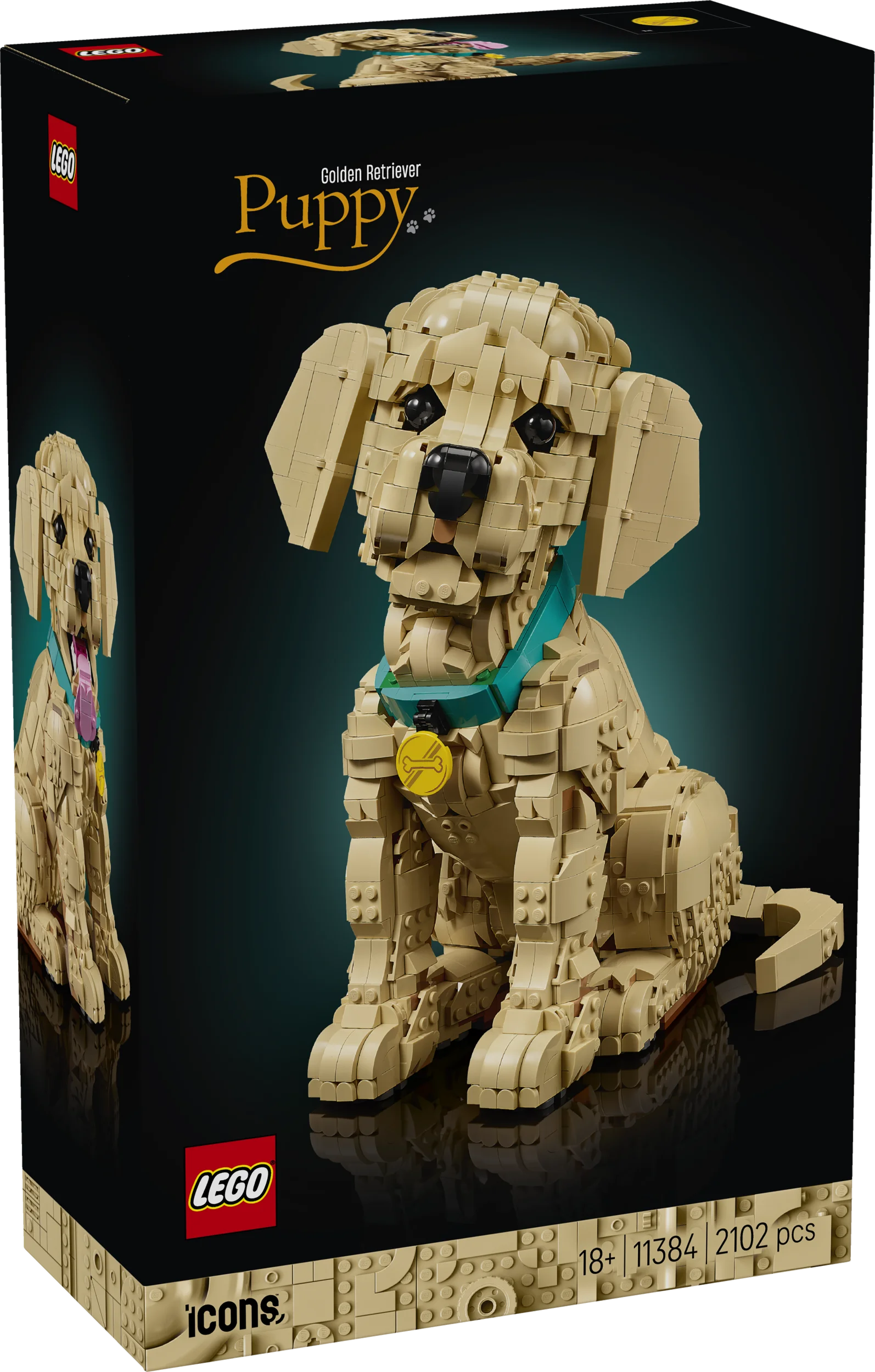 - DZĪVNIEKA FIGŪRAS BŪVĒŠANAS KOMPLEKTS. Iepriecini sevi vai tuvinieku ar šo LEGO® Icons Zelta retrīvera kucēna (11384) būvēšanas komplektu pieaugušajiem un dzīvnieku mīļotājiem