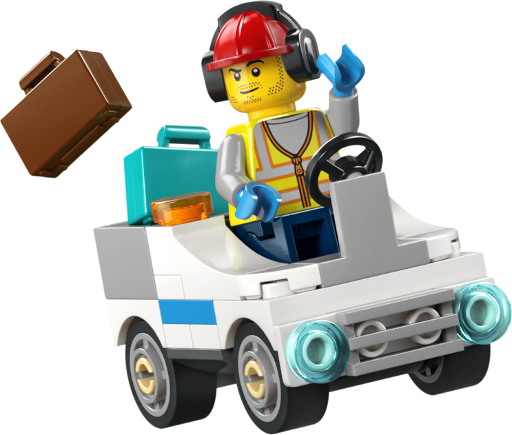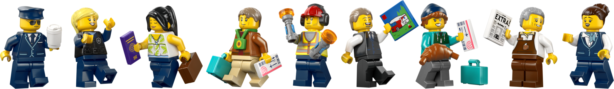 - MINIFIGŪRU AKSESUĀRI. Šajā rotaļu lidostas komplektā ir LEGO® aksesuāri, tostarp trīs čemodāni, divas iekāpšanas kartes, manevru rādīšanas zižļi, ap kaklu liekama aukla, pase, avīze, karte un kruasāns