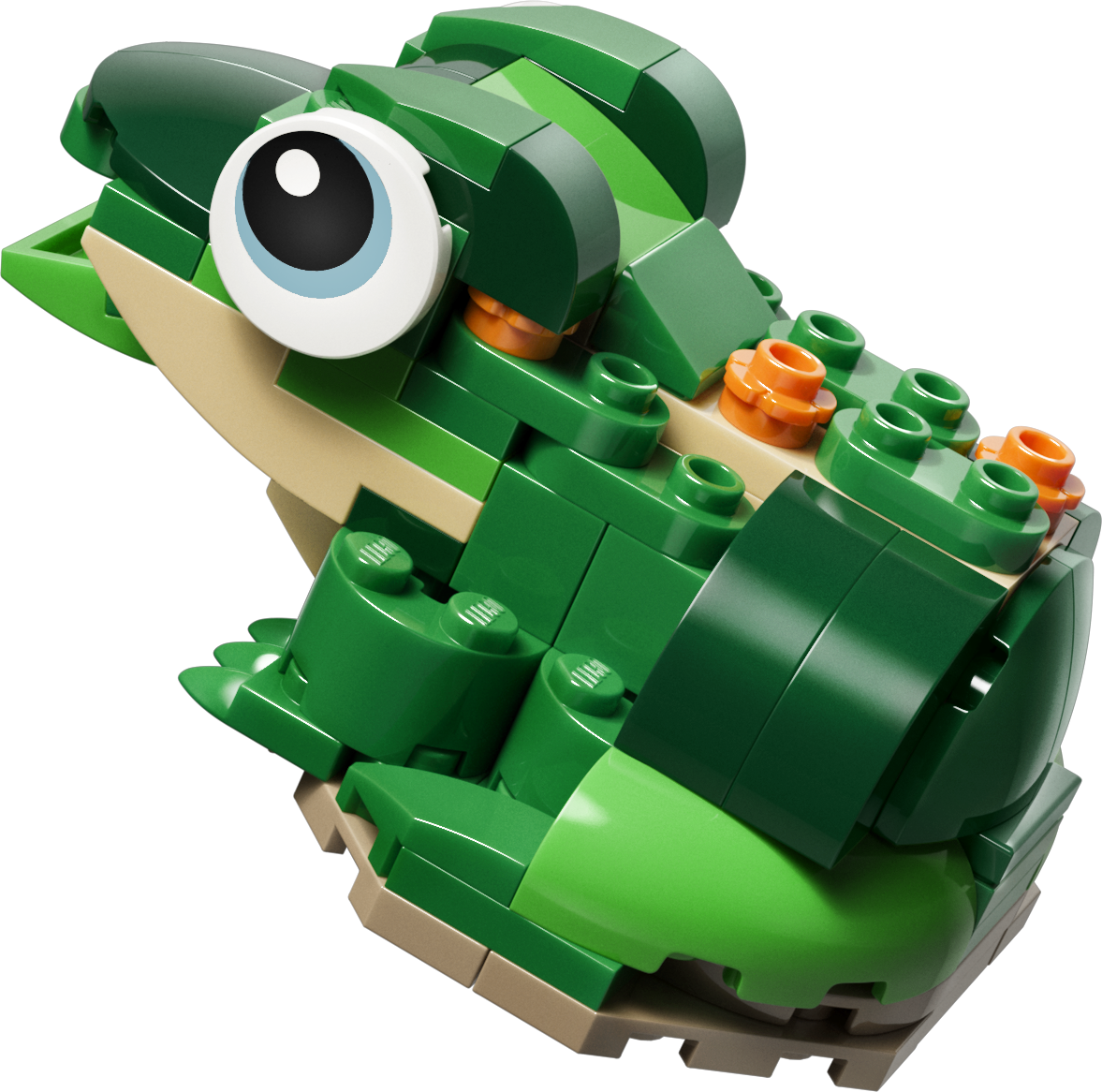 Bērni var izvēlēties uzbūvēt bruņurupuci ar kustīgu galvu un muti, ko papildina skaists rozā ūdensrozes zieds. Pēc tam to var pārbūvēt par hameleonu ar kustīgu galvu un asti, vai rotaļu vardi ar kustīgu muti. Kad rotaļu laiks ir galā, katru no modeļiem var izlikt apskatei kā aizraujošu telpas dekoru.