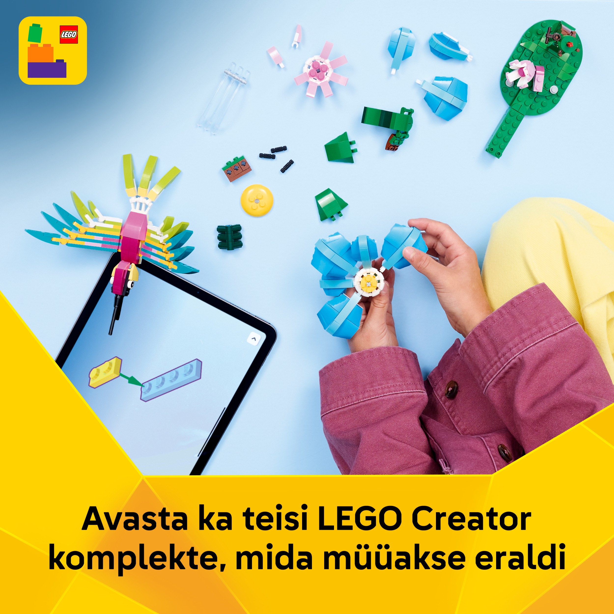 Šis LEGO Creator "Trīs vienā" komplekts iedvesmos mazos prātotājus, un tā būs lieliska dāvana bērniem, kam patīk daba un skaisti dzīvnieki. Bērni katru rotaļu komplektu var būvēt ar pārliecību, izmantojot lietotni LEGO Builder – tajā var tuvināt modeļus un sekot līdzi progresam ar viegli izpildāmām digitālām instrukcijām. Ņem vērā, ka modeļus nevar būvēt vienlaikus. Komplektā ir 312 detaļas.