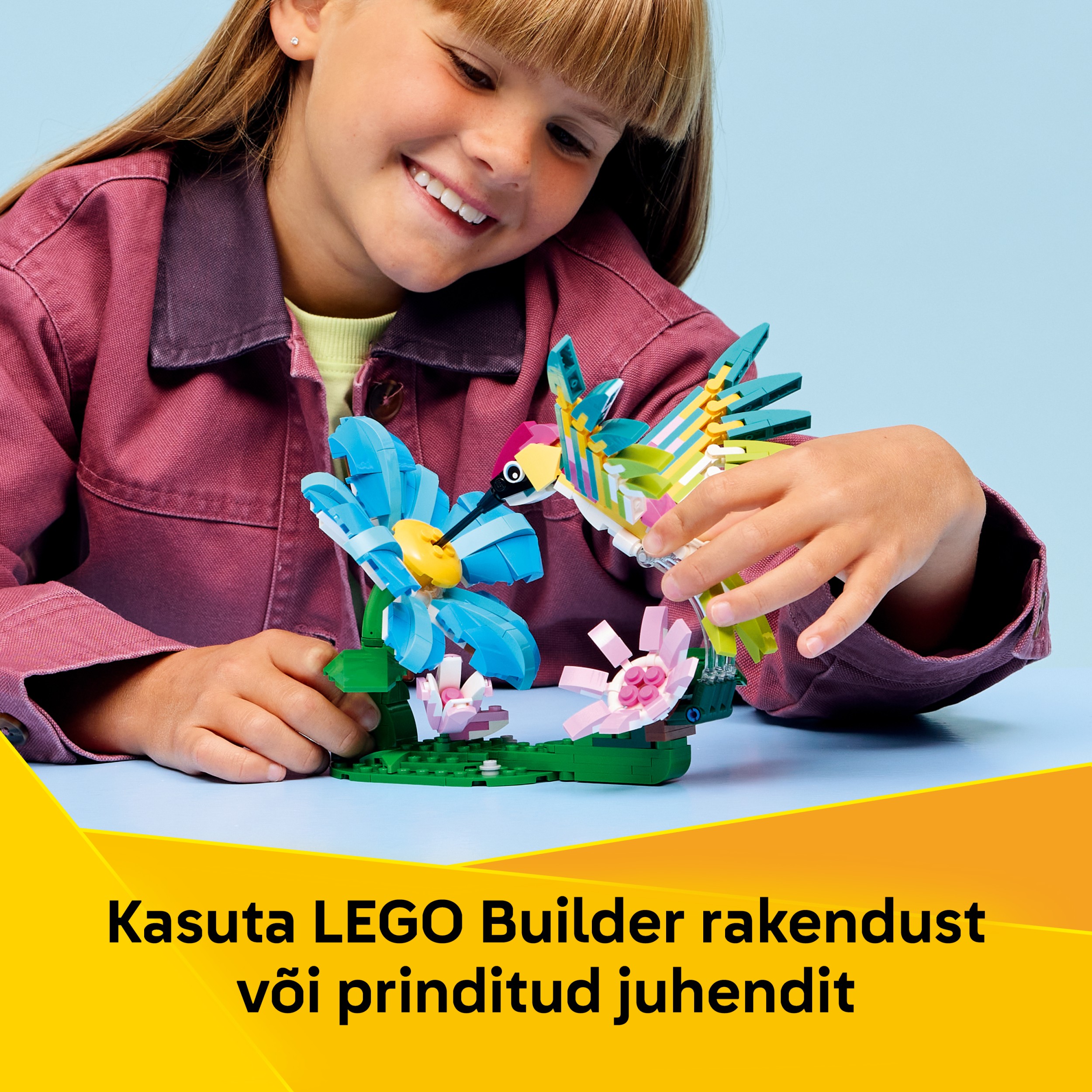 - KUSTĪGI LEGO® DZĪVNIEKI. Kolibri ieņem dinamisku pozu, un tam ir kustināms kakls, spārni un aste, savukārt tauriņš var kustināt spārnus