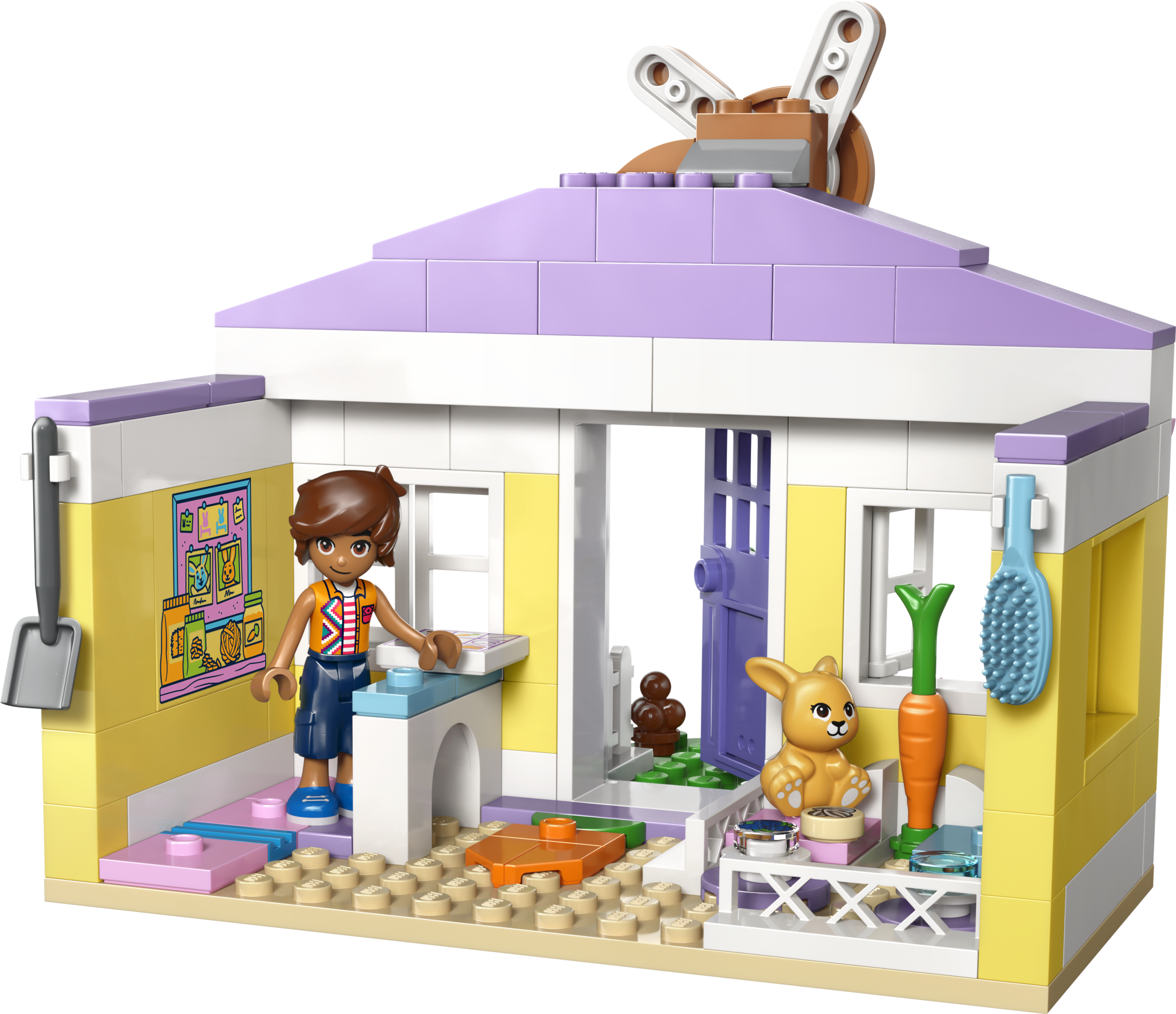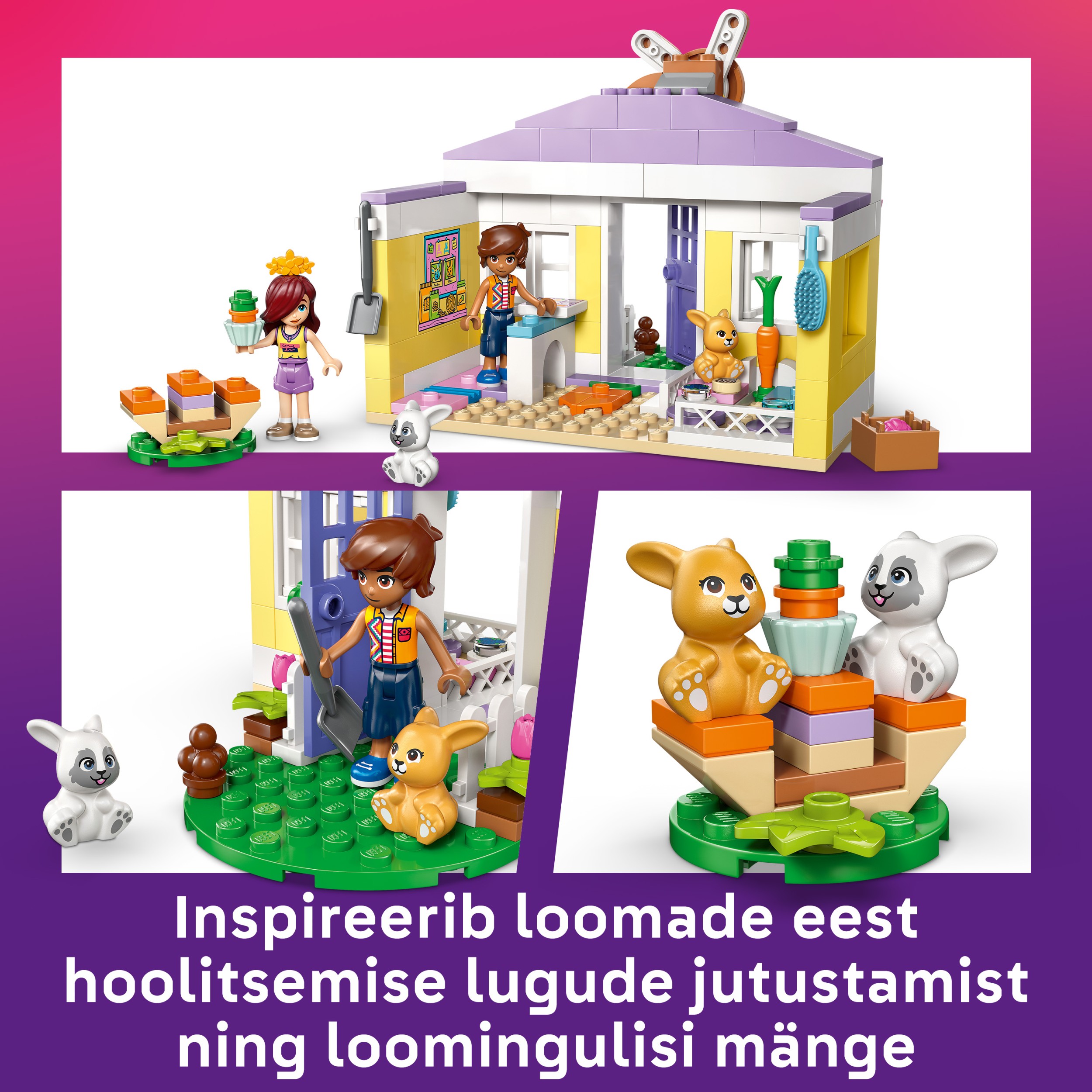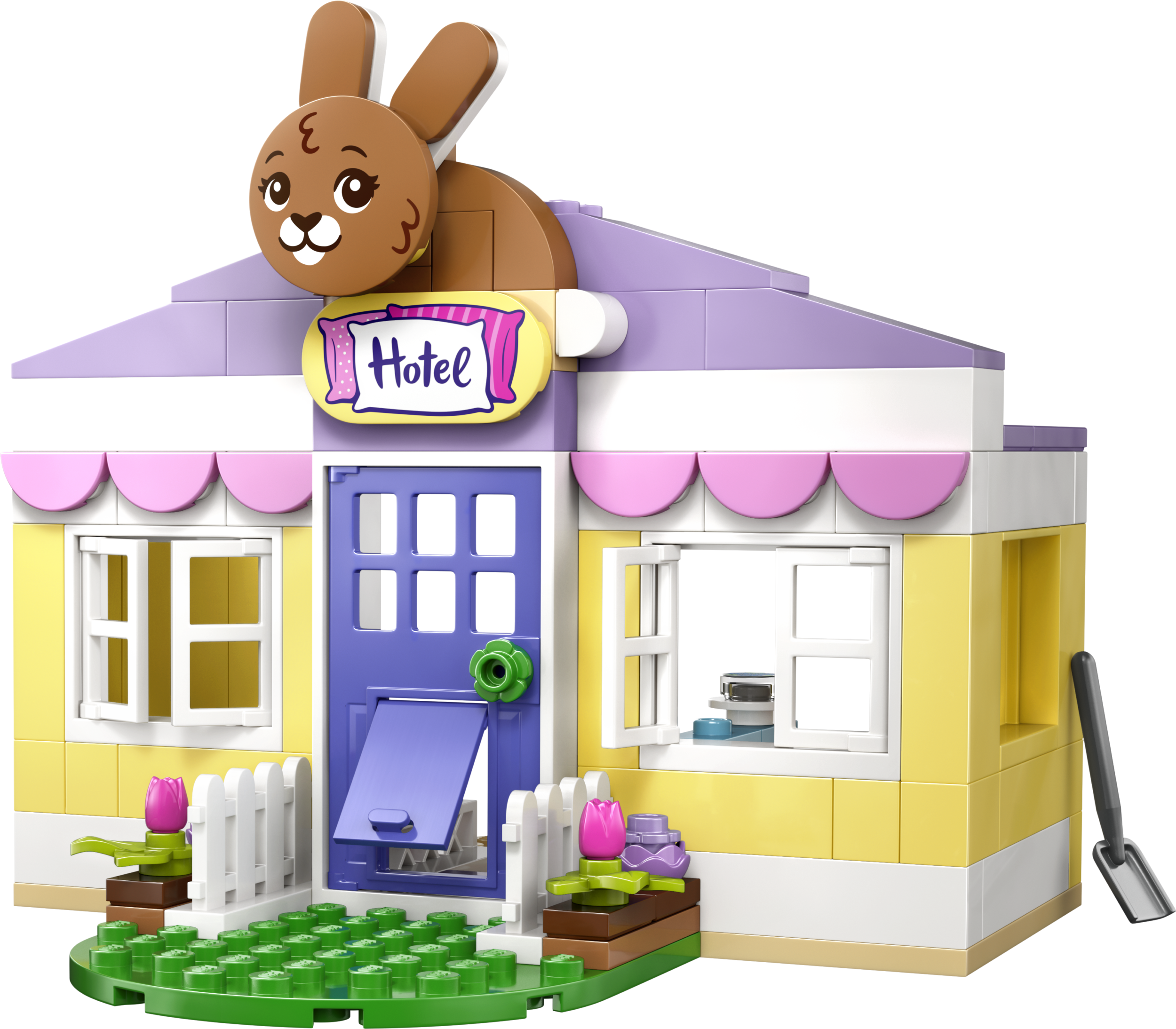 Ielec stāstos ar LEGO® Friends Hārtleikas pilsētas trušu viesnīcu (42679) – rotaļlietu meitenēm un zēniem no 5 gadu vecuma. Šajā rotaļlietā ir 2 minilellītes un 2 rotaļu truši, kas bērniem ļauj stāstīt stāstus par dzīvnieku aprūpi.