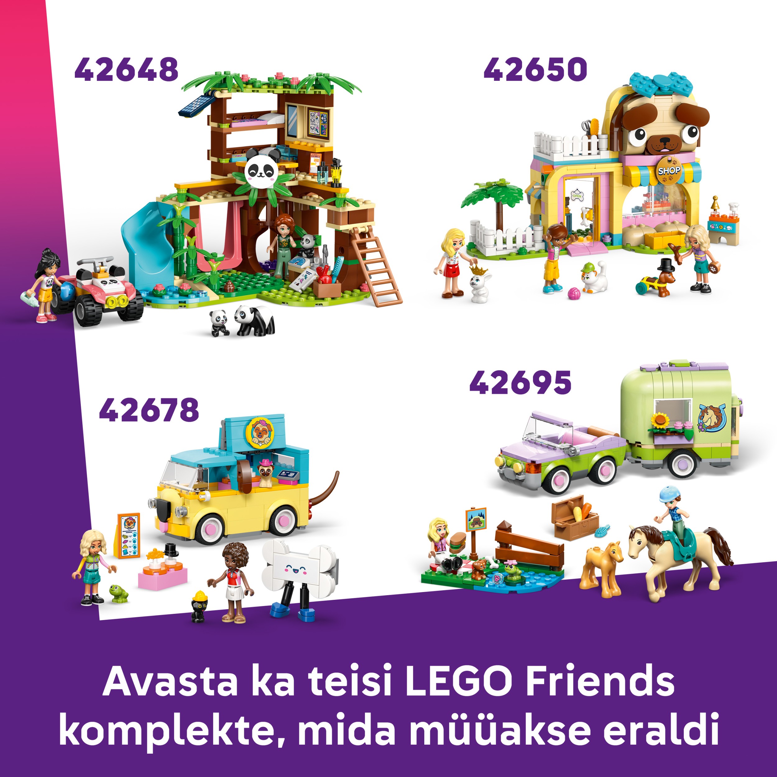 - TIEŠSAISTES ŠOVS. Atklāj vairāk radošu rotaļu ideju ar citiem komplektiem (jāiegādājas atsevišķi) un tiešsaistes šovu LEGO® Friends: The Next Chapter, kur bērni var iepazīt Hārtleikas pilsētas varoņus