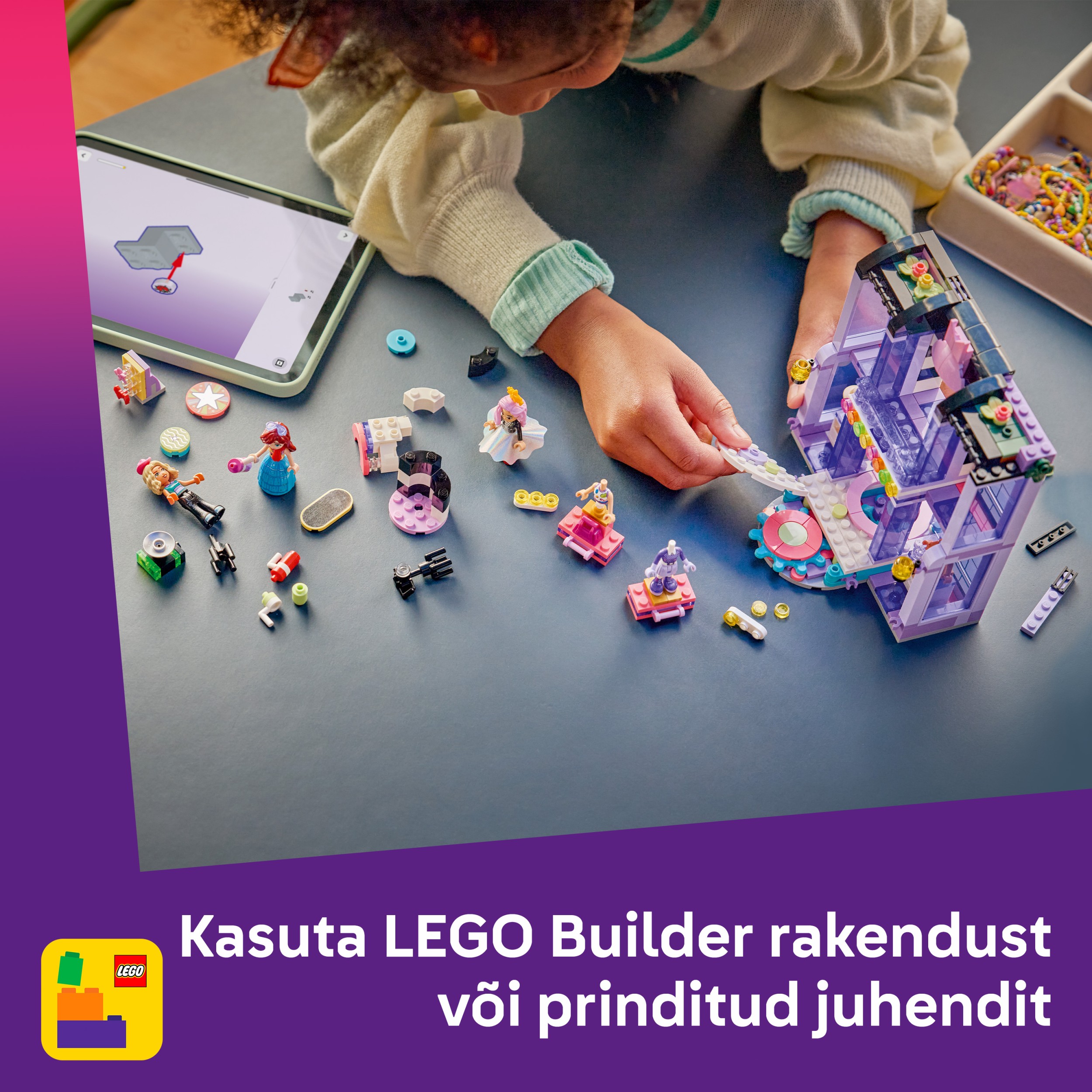 Šis komplekts ir lieliska dāvana meitenēm un zēniem, kam patīk ar apģērbiem un modi saistītas rotaļlietas. Bērni var izbaudīt intuitīvu būvēšanas pieredzi ar lietotni LEGO Builder, kurā var tuvināt un grozīt modeļus ar 3D instrukcijām, vienlaikus sekojot līdzi progresam – tas viss lietotnē. Komplektā ir 410 detaļas.