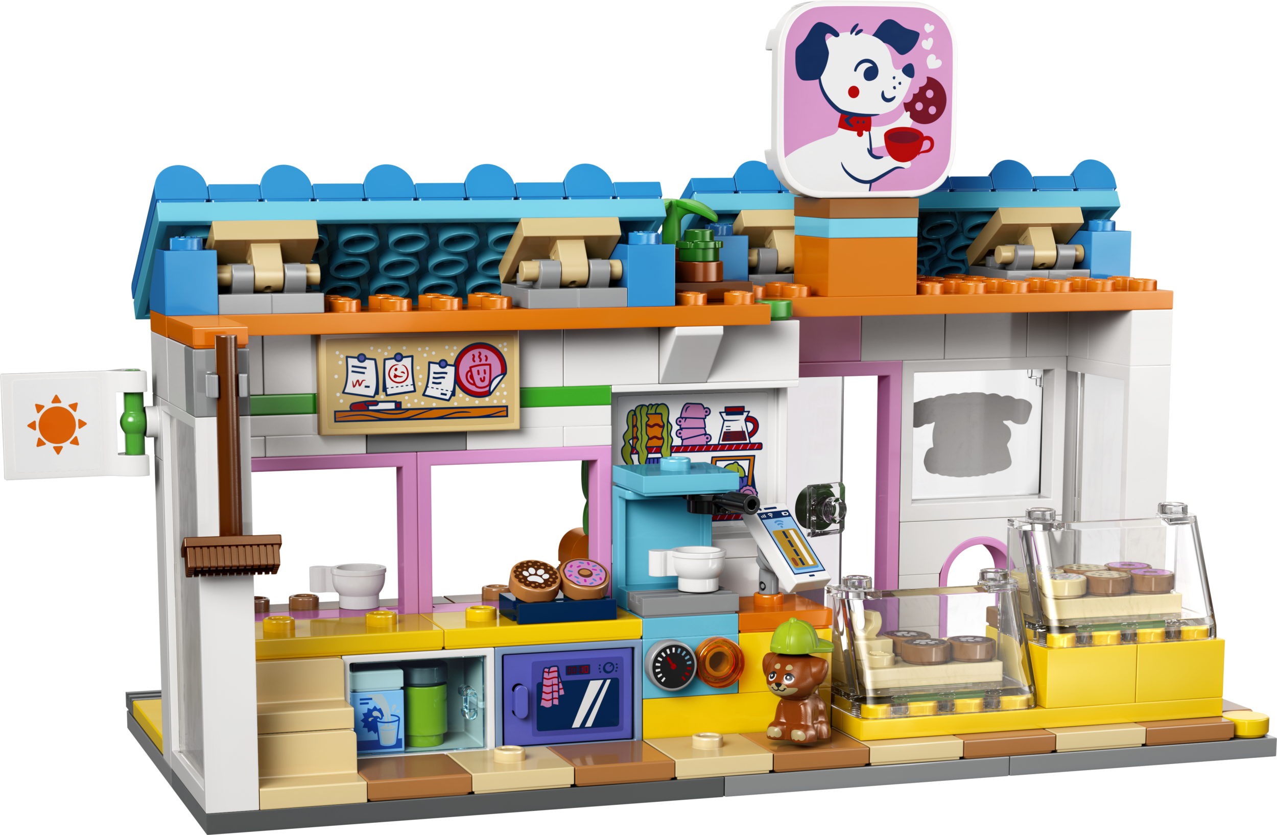 - IZSPĒLĒ STĀSTUS PAR MĀJDZĪVNIEKIEM. Radi asti luncinošus stāstus suņukiem un to saimniekiem LEGO® Friends Suņu gardumu ceptuvē (42677), kur ir cepeškrāsns, kafijas automāts, ledusskapis, sēdvietas un citas lietas