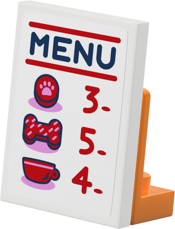 - AIZRAUJOŠI CEPTUVES AKSESUĀRI. Aksesuāri, kas rosinās bērnu iztēles, ietver ēdienkarti, virtuļus, cepumus, pienu, tasītes, suņu kārumus, kaulu, cepures tēliem un viņu mājdzīvniekiem, un citas lietas