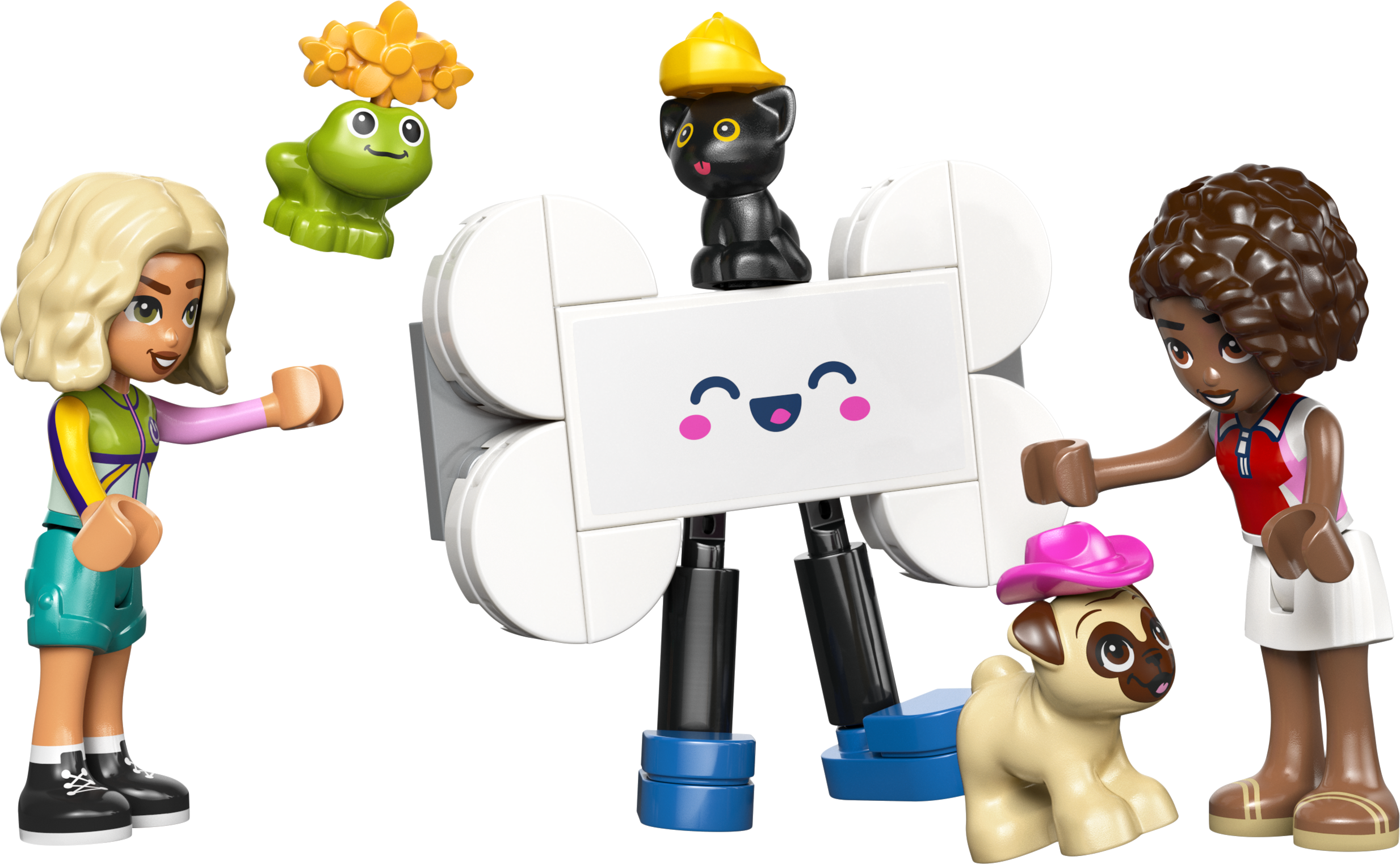 - 2 LEGO® FRIENDS PERSONĀŽI. Stāstu veidošana un izlikšanās rotaļas ir vareni jautras šajā rotaļlietu komplektā, kas ietver Novas un Alijas minilellītes, kā arī trīs dzīvnieku figūras: kaķēnu, suni un vardi