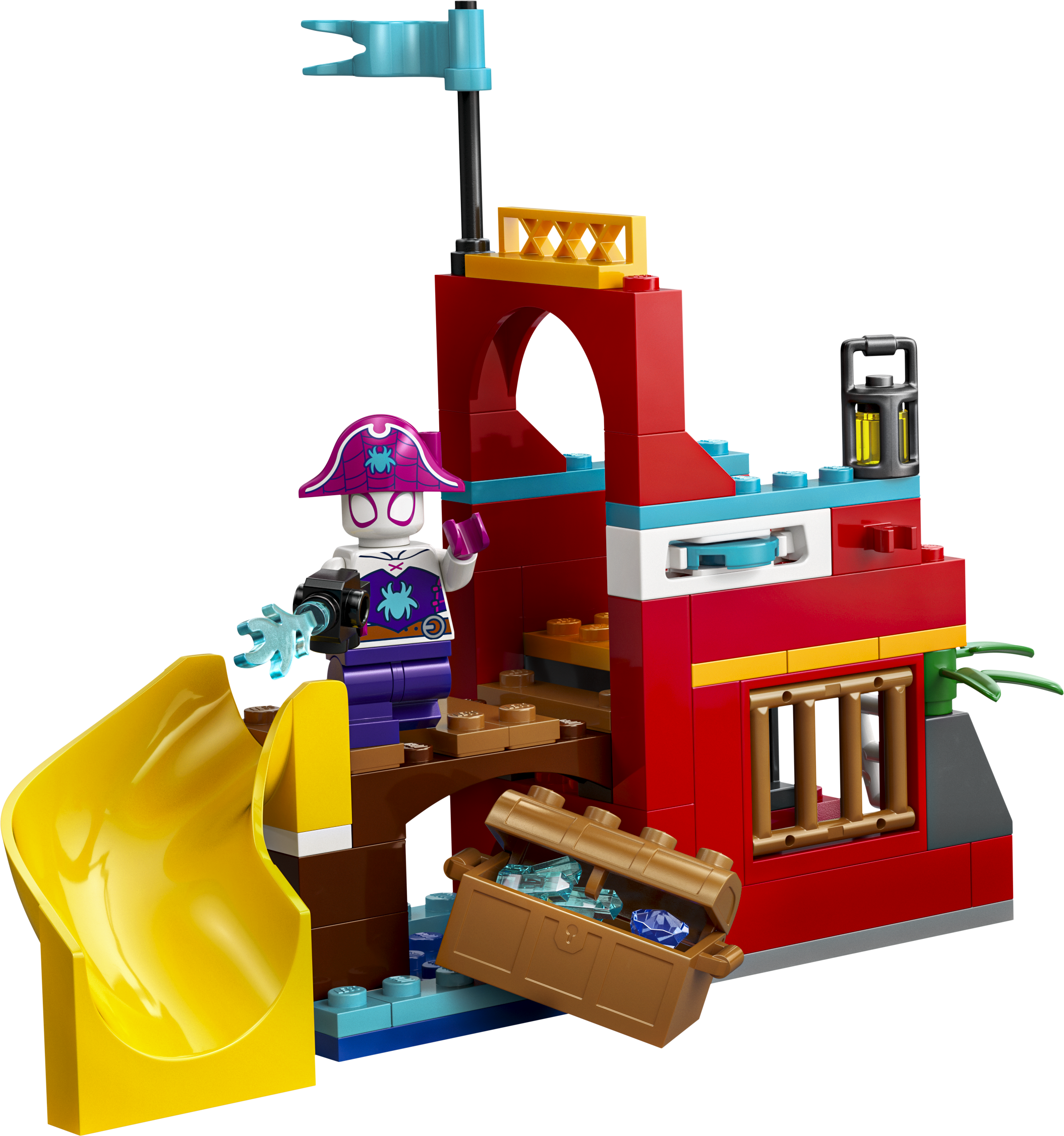 Šī aizraujošā, funkcijām pilnā Spidey būvēšanas rotaļlieta ietver pirātu kuģi, Spider Island salu ar slidkalniņu, Zaļā Goblina kuģi un mazāku laivu. Uz pirātu kuģa ir lielgabals, uz salas ir disku šāvējs un uz Zaļā Goblina kuģa ir šaujamieroči. Spidey tīkla virvi var izmantot, lai noķertu zivi, dārgumu lādi vai Goblina kuģi. Šī dāvana seriāla Spidey And His Amazing Friends faniem ietver arī krāsainas instrukcijas attēlu formā, Sākuma klucīti un atsevišķas paciņas ar vienu būvējamo modeli katrā, kas būvēšanu padarīs ātru un aizraujošu. Turklāt ar lietotni LEGO® Builder bērni var tuvināt, grozīt modeļus trīs dimensijās un sekot līdzi progresam ar viegli izpildāmām digitālām instrukcijām. Būvēšanas komplektā ir 201 detaļa.