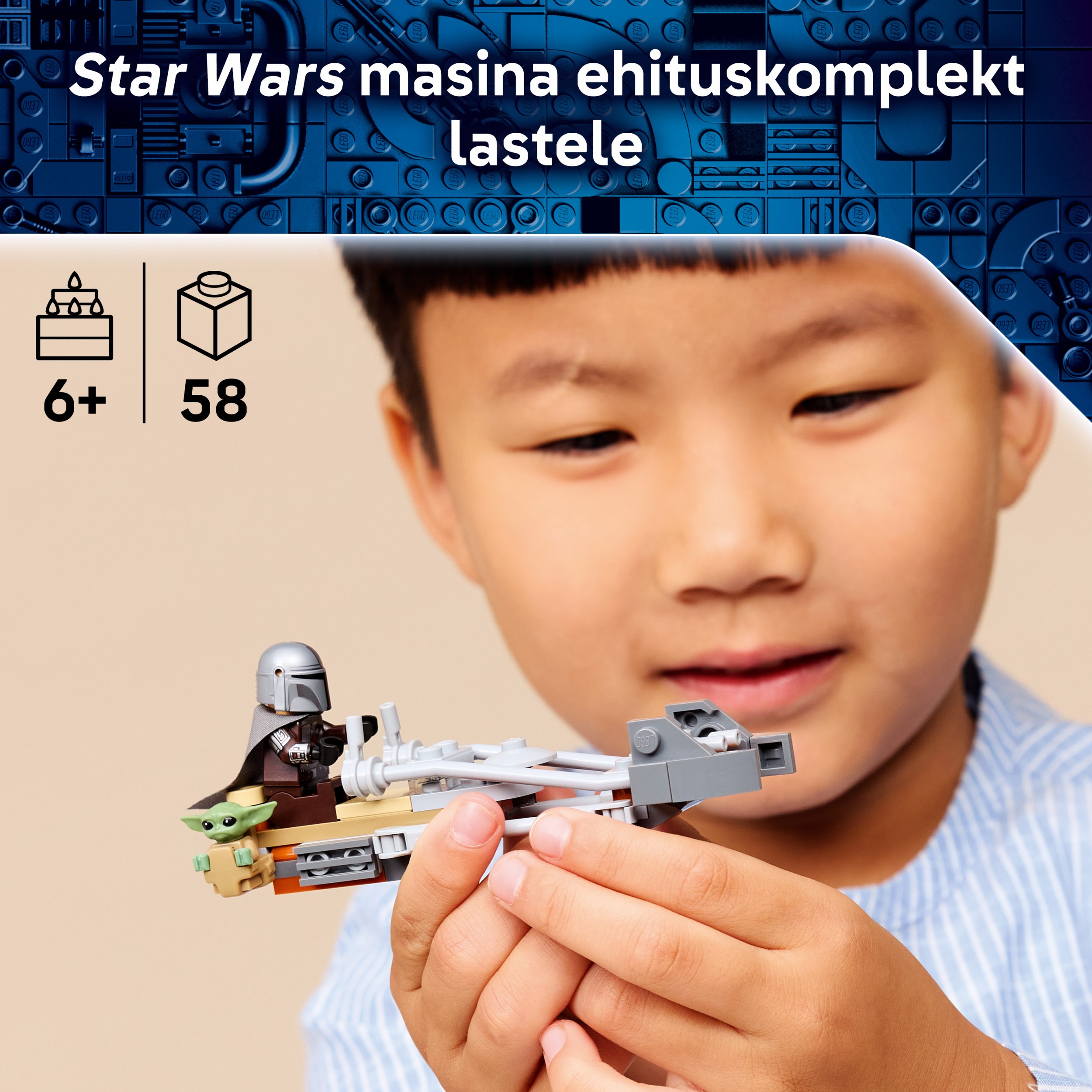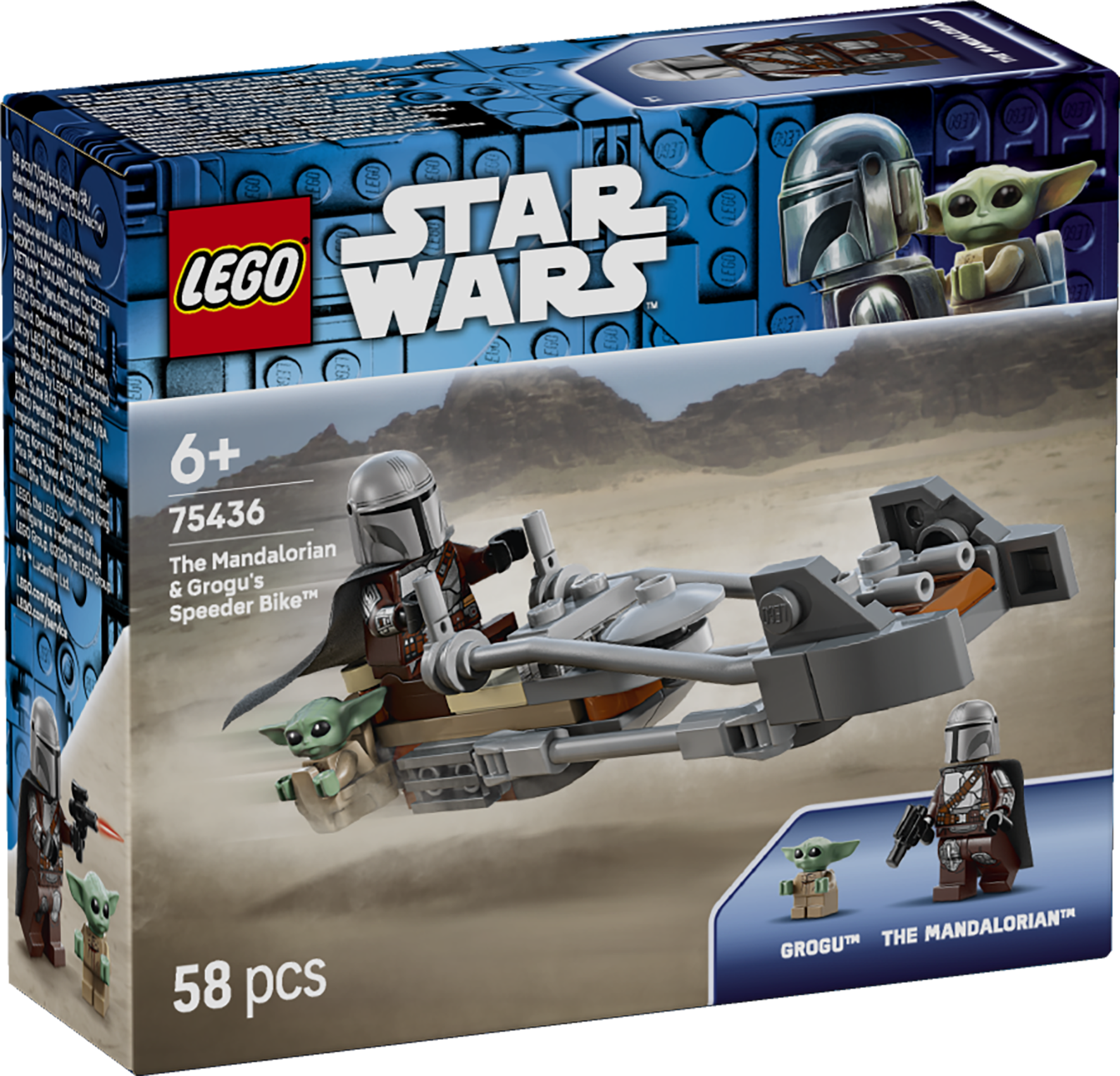 Atveido aizraujošās Star Wars: The Mandalorian™ 1. sezonas ainas uz Tatooine planētas ar šo būvējamo rotaļlietu komplektu. Šī ir aizraujoša dāvaniņa zēniem un meitenēm no 6 gadu vecuma un tajā ir Mandalorian Grogu ātrgaitas motocikla klucīšu versija (75436). Ievieto Mandalorian LEGO minifigūru vadītāja sēdeklī kopā ar Grogu LEGO figūru somā. Piestiprini Mandalorian šauteni transportlīdzekļa aizmugurē, gatavu piedzīvojumiem.