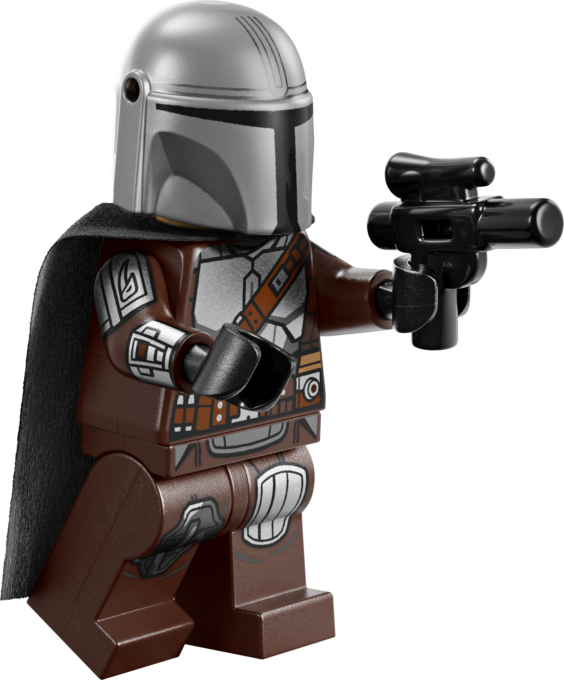 - 2 ZVAIGŽŅU KARU TĒLI. Lomās izspēlē fantāzijas piedzīvojumus ar Mandalorian LEGO® minifigūru, kas ir bruņota ar blasterpistoli, kuru var pārveidot par šauteni, un Grogu LEGO figūru
