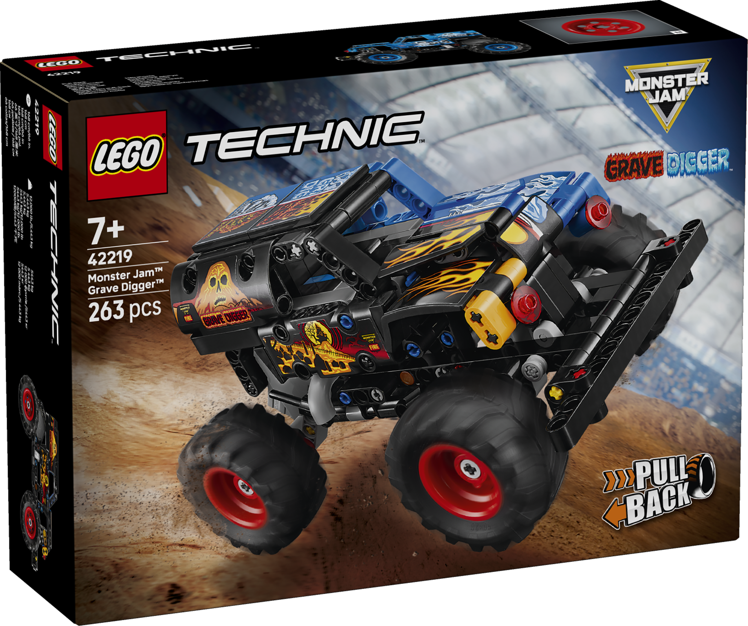 - BŪVĒJAMS ROTAĻU MONSTER JAM™ GRAVE DIGGER™. Pievienojies jautrībai ar šo LEGO® Technic Monster Jam™ Grave Digger™ Uguns un Ledus (42219) atvelkamo auto bērniem no 7 gadu vecuma