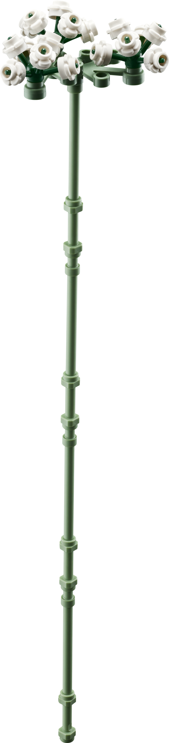 - Цветы LEGO® — в наборе представлены четыре розы в полном цвету, четыре только что распустившиеся и четыре бутона, а также четыре веточки гипсофилы с белыми цветами.