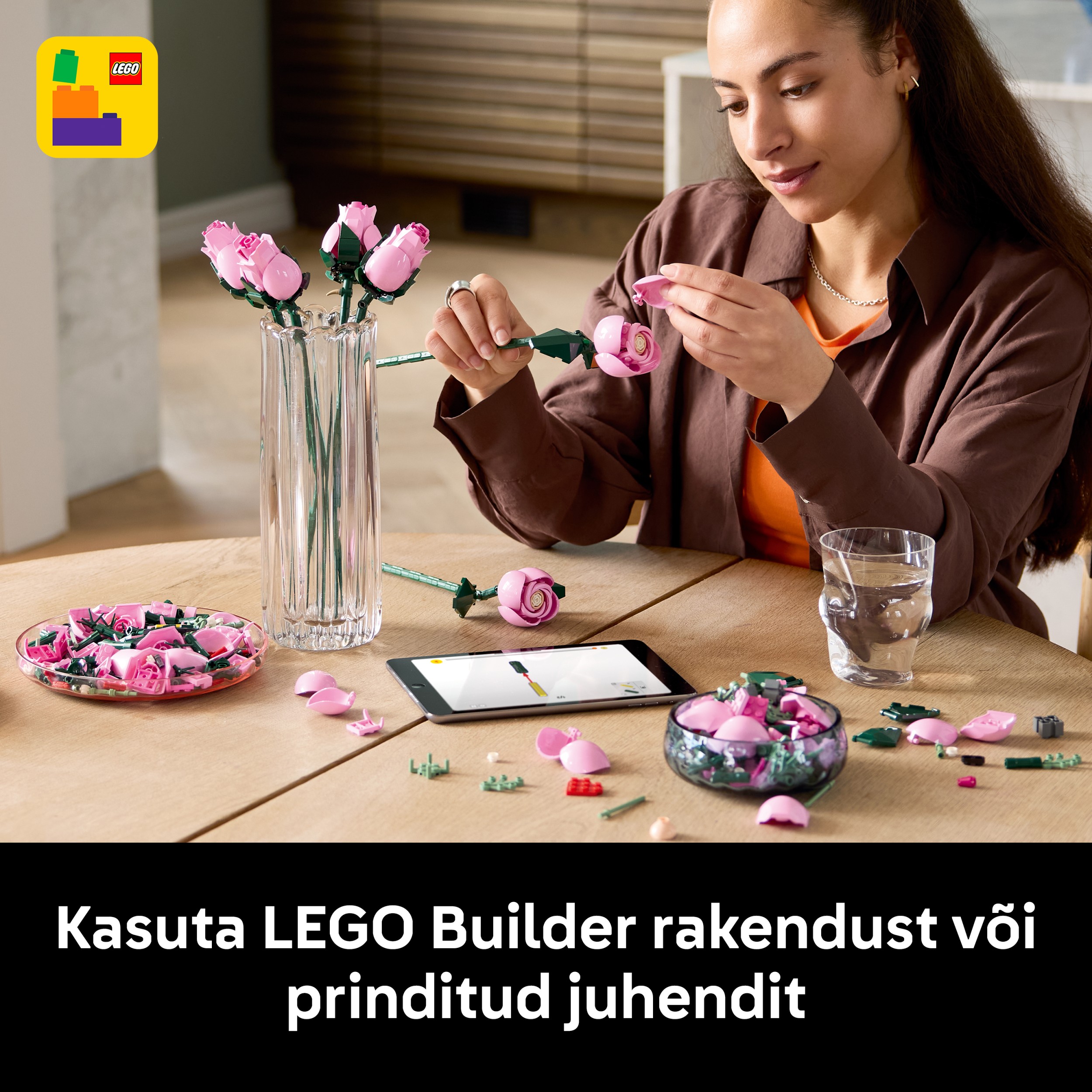 - Набор для сборки букета — подарите радость творчества с этим полным цветочных деталей набором для взрослых «Букет розовых роз» LEGO® Botanicals.
