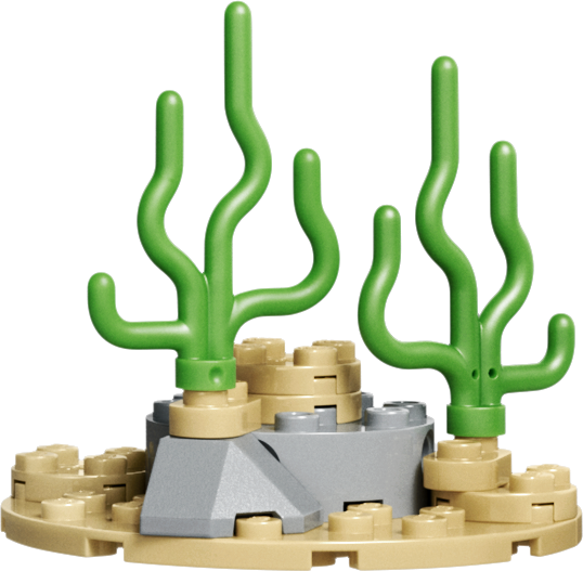 Они могут собрать подвижную игрушечную акулу, которую можно выставить на подставке с сундуком с сокровищами и крабом. Затем ее можно перестроить в рыбу-удильщика на подставке с морскими растениями или подвижного игрушечного ската манту на подставке с ракушкой. Когда сборка и веселая игра закончатся, каждую модель можно выставить на полке или столе как украшение комнаты.