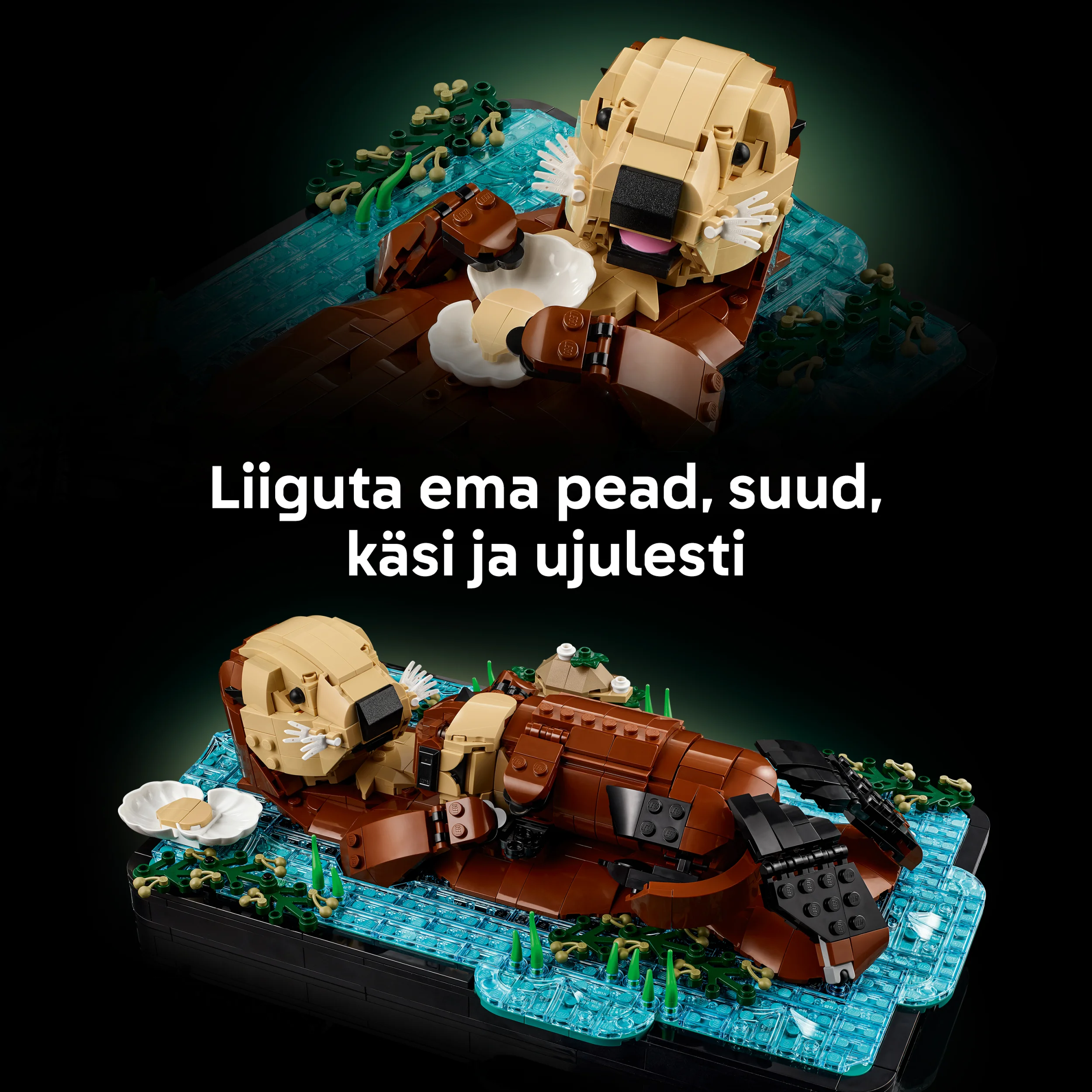 - ДВА МОРСКИХ ЖИВОТНЫХ — соберите детально проработанную модель LEGO® мамы-калана, отдыхающей в воде, со съемной фигуркой детеныша из кубиков.