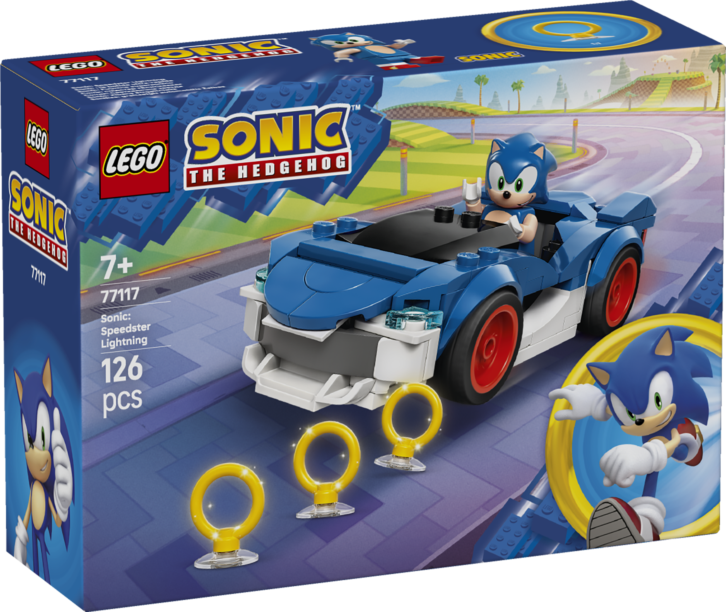 Динамичные гоночные приключения ждут детей от 7 лет и старше с набором Машина Соника: Скоростная звезда LEGO® Sonic the Hedgehog™ (77117) детей от 7 лет. Модель сделана по мотивам игры Sonic Racing: CrossWorlds. Этот набор позволит мальчикам, девочкам и фанатам игр гонять по трассе и собирать три золотых кольца вместе с минифигуркой Соника с озорным выражением лица. В этом игровом наборе LEGO есть сине-белая интерактивная игрушечная машинка с широкими красными колесами и открывающимся капотом, в котором спрятан драгоценный изумруд Хаоса.